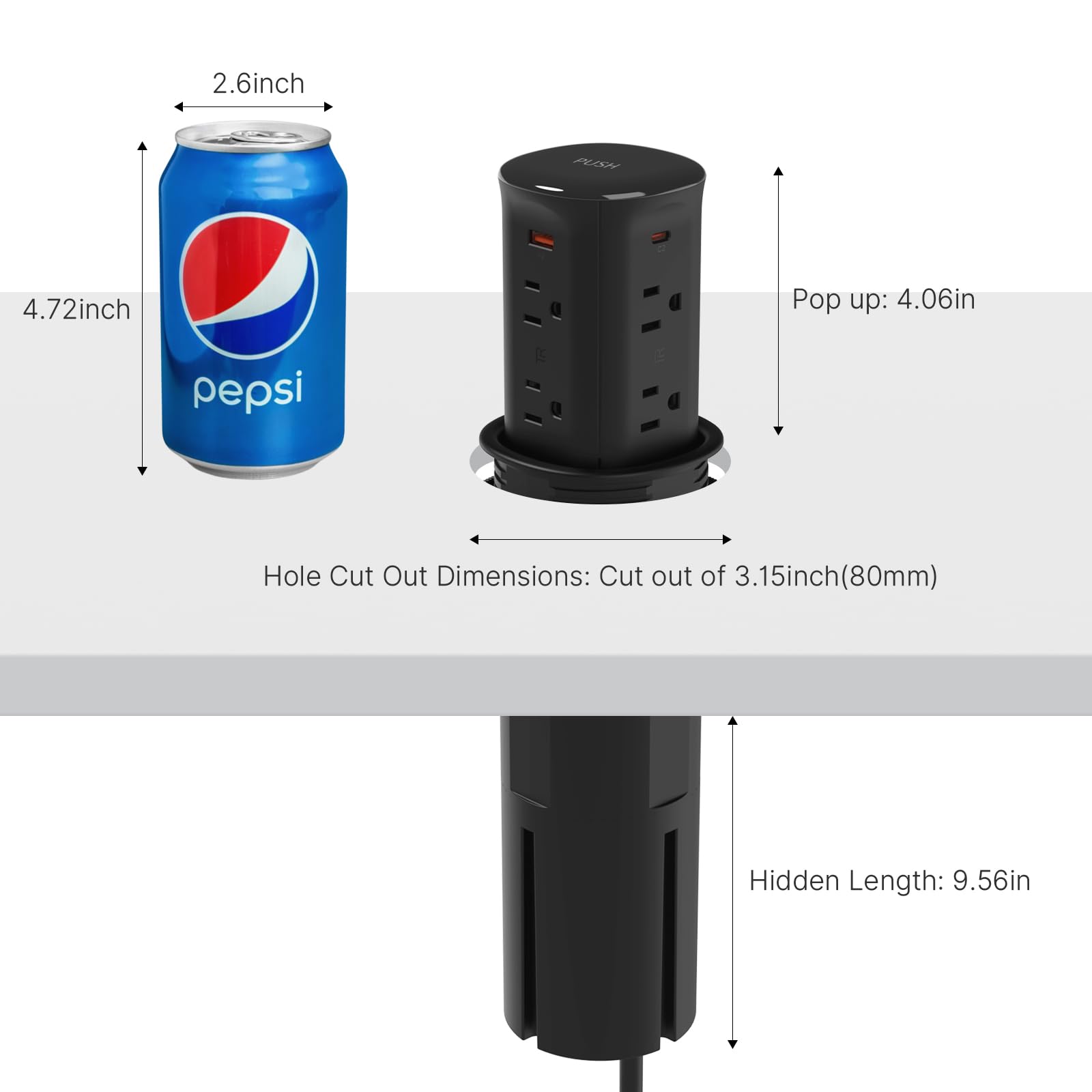 Easy DIY Installation in Minutes: Simply cut a 3.15-inch hole, drop in the outlet body, and tighten the mounting ring. The spring-loaded pop-up mechanism activates with a gentle press - ready to use instantly! Perfect for home kitchens, offices, or conference rooms.