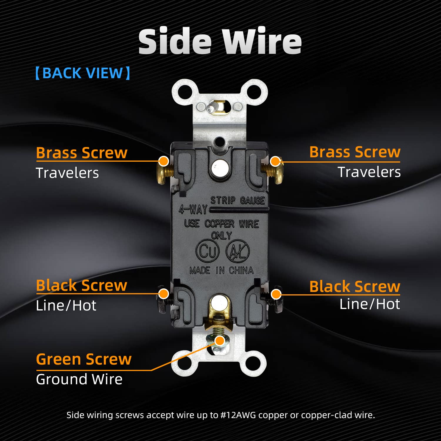 【4 Way Toggle Switch】 This toggle switch is a high-quality wall switch meant specifically for 4-way applications. When installed properly between two 3-way wall switches, this device allows a single load or lighting fixture to be controlled from all three switches in the circuit.