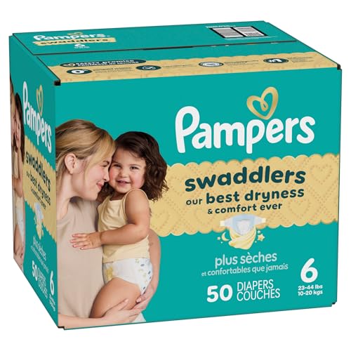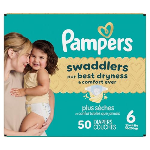 Wrap your baby in our best dryness and comfort ever. Try Pampers Swaddlers. These Pampers disposable diapers are designed with a KeepDry Liner and irresistible pillowy softness to keep your baby dry and comfortable from their very first days and beyond. Plus, they’re drier than the Luxury Diaper for all-night comfort. Pampers Swaddlers are dermatologist tested, hypoallergenic, and free of elemental chlorine, parabens, and latex** to protect babies’ sensitive skin. Pampers Swaddlers surround your baby with up to 100% blowout and leak protection, thanks to their absorbent core and All-Around LeakGuard with Blowout Barrier. Trusted by pediatricians and parents alike, Pampers Swaddlers are from the Most Awarded Diaper Brand^, the #1 pediatrician recommended brand^^, Best of Babylist winner, and the #1 choice of parents^^^. Pampers has been providing products that prioritize comfort, safety, and effectiveness for over 60 years. Earn savings while you shop with Pampers Rewards. Every 10 scans = $10 off. Scan. Earn. Repeat. Use them with Pampers Sensitive Baby Wipes for healthy skin. Pampers Swaddlers are available in preemie diapers, newborn diapers, and size 1 through size 8. To find your baby’s ideal fit, just measure by weight and reference our available baby diaper sizes. Pampers preemie diapers (up to 4 lbs.), newborn diapers (up to 10 lbs.), size 1 diapers (8–14 lbs.), size 2 diapers (10–22 lbs.), size 3 diapers (13-26 lbs.), size 4 diapers (15–34 lbs.), size 5 diapers (20-37 lbs.), size 6 diapers (23-34 lbs.), size 7 diapers (26-50 lbs.), size 8 diapers (30+ lbs.). *Based on S4 Luxury Diaper Brand. 3 typical wettings of 75mL **No natural rubber. ^ Based on Awards Given 2021-2025 ^^ Based on 2024 survey of U.S. and Canadian pediatricians. ^^^ Based on Nielsen dollar sales L52W