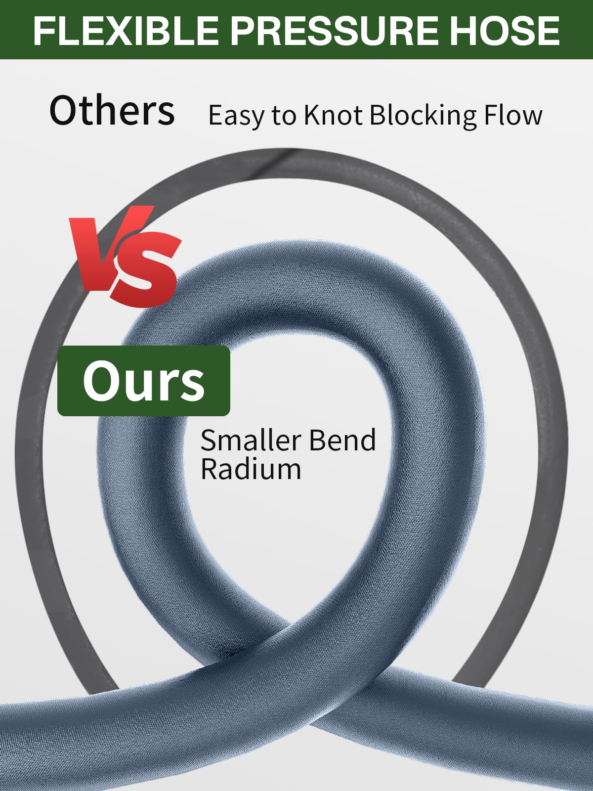 【100FT Powerful Washing Hose】Upgraded high-strength steel wire braiding and German engineering redesigned 100-foot hose, kink-resistant, wear-resistant, with a bend radius of less than 3 inches, 50% more flexible than cheaper hard hoses, easy to drag, fast moving. Working temperature 35°F to 248°F (0°C to 120°C), suitable for all-weather use, suitable for hot and cold water use, easier and faster to remove heavy dirt.