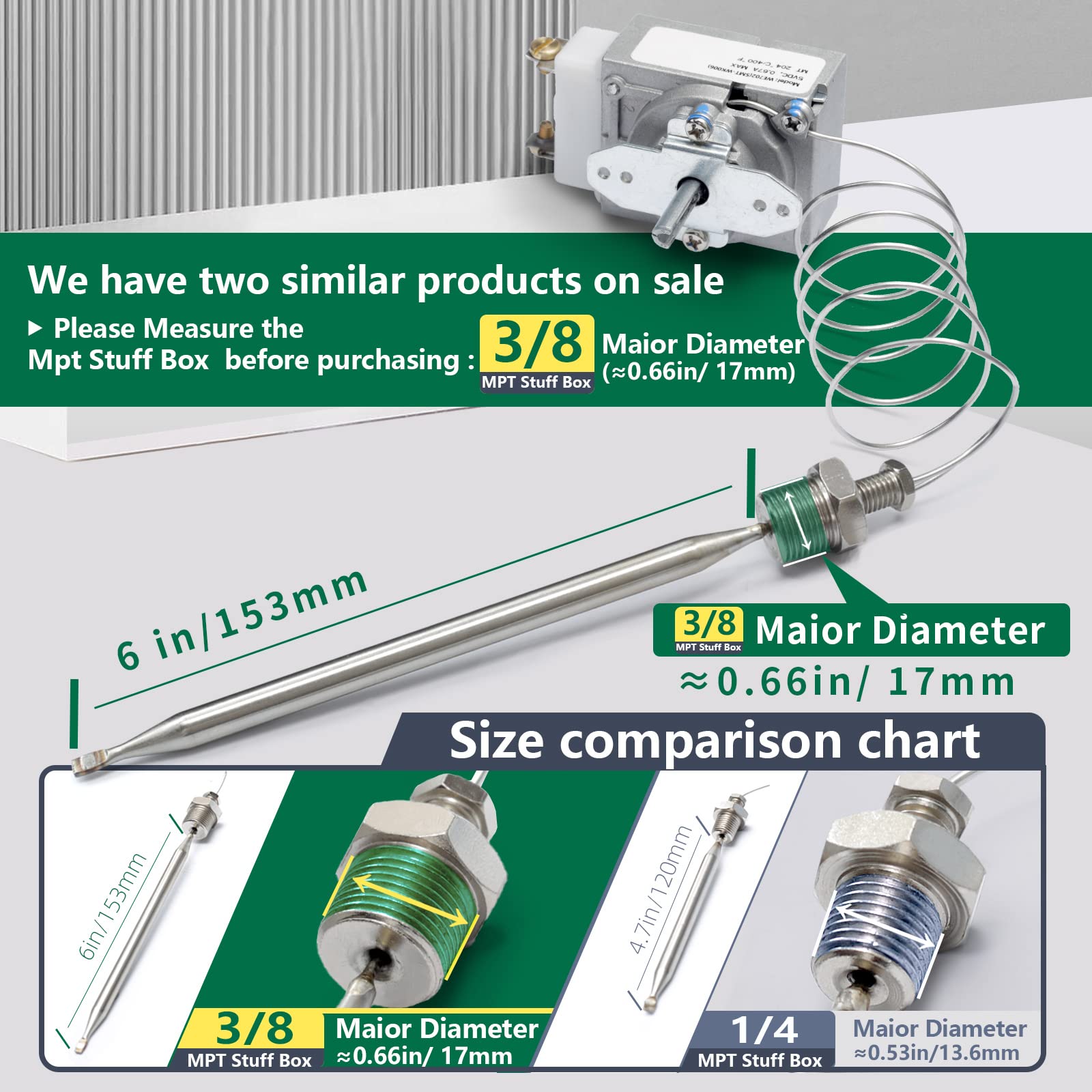 The RX-2-24 Thermostat for Fryer is compatible with ROBERTSHAW, Replacement for Adcraft deep Fryer, We have two similar products (3/8" and 1/4" Mpt Stuff Box), Please measure the dimensions of replacement parts before purchasing: 3/8" Mpt Stuff Box Major Diameter ≈0.66in/17mm.