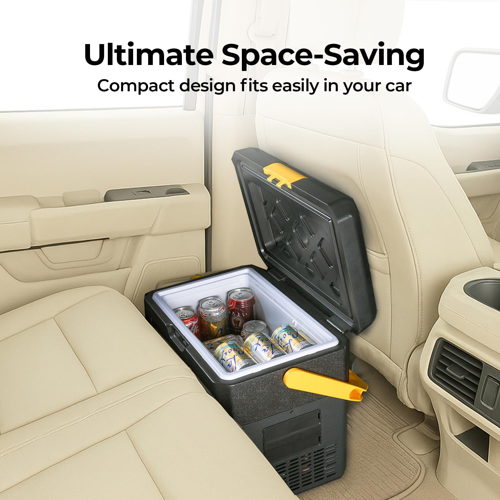 19 Quart Generous Capacity: This compact freezer can hold up to 25 cans of 12 fl oz soda or 15 bottles of 16.9 fl oz water, making it ideal for 1-2 people. Great for camping, road trips, and other outdoor activities, enjoy the convenience of chilled beverages and food on the go