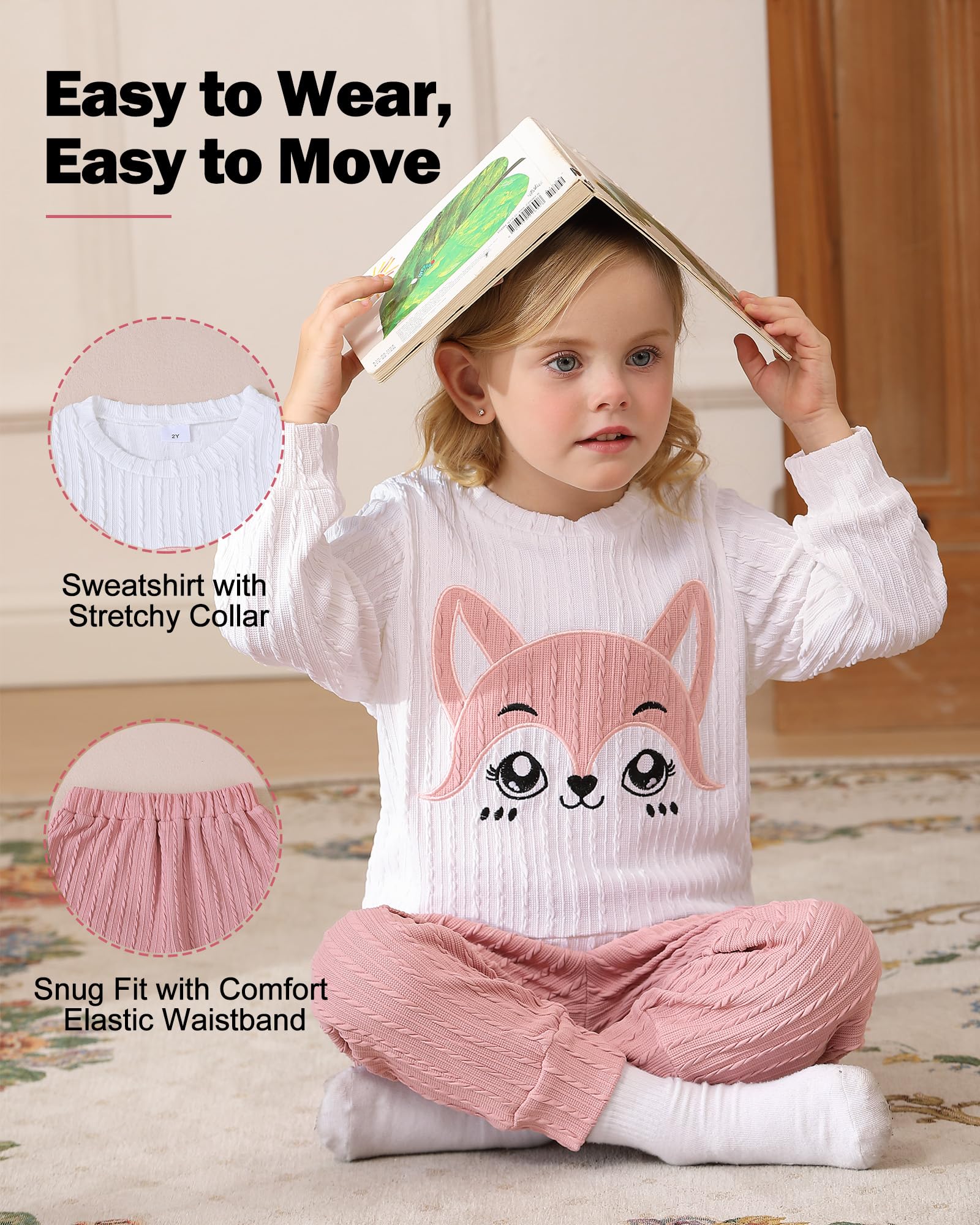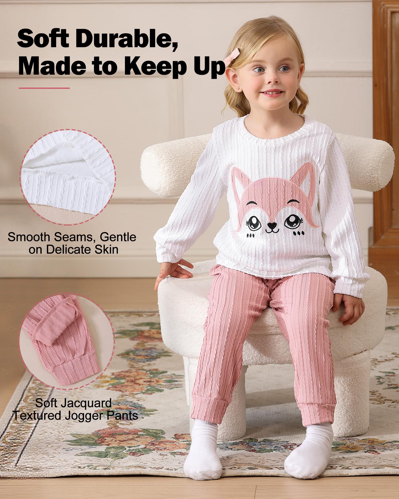 Cute Toddler Girl Clothes: The toddler clothes set is made from soft flexible knitted jacquard fabric that keeps kids dressed neatly and cozy in fall winter during daily outings and play at home.
