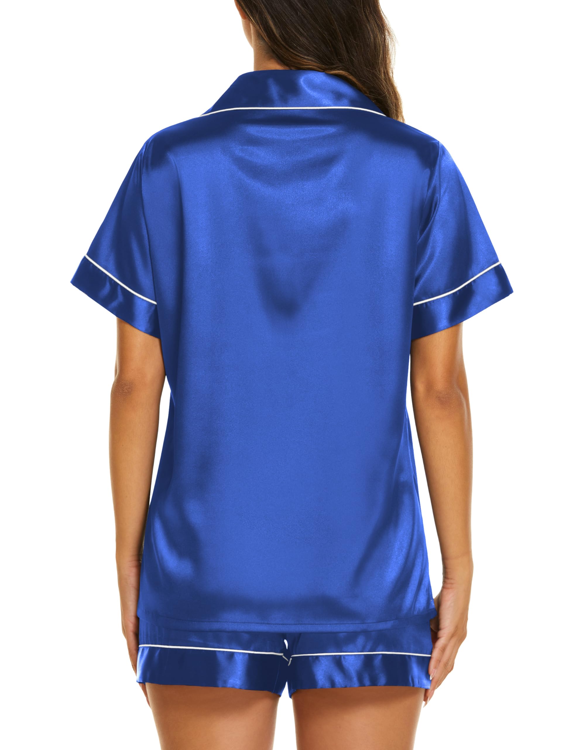 Material:Satin pajama set is crafted from premium silky satin fabric (95%Polyester+5%Spandex). Ultra-soft, silk touch,skin-smoothing feel, comfort Ekouaer sleepwear