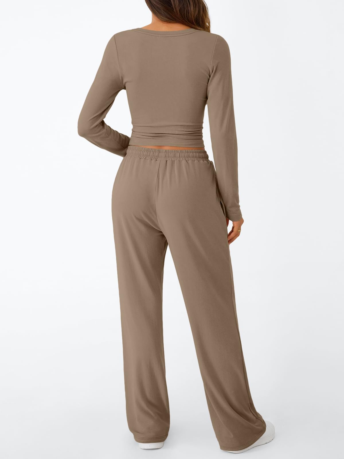 Design & Style: With a sleek crop top and wide-leg pants, this set is designed for those who love a mix of style and relaxation. The side ruching adds a touch of elegance, while the drawstring waist on the pants guarantees a comfortable fit that moves with you.
