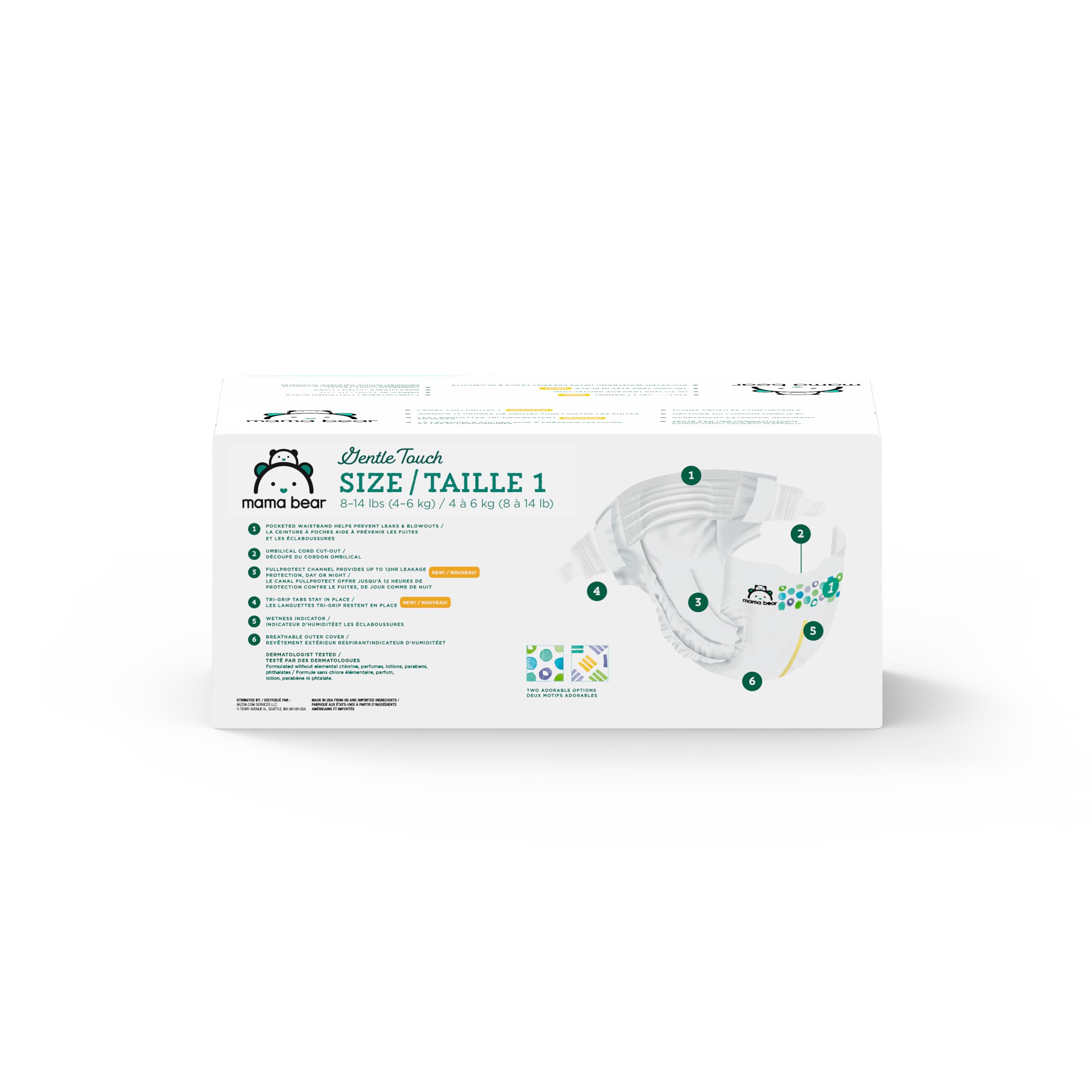 IN THE BOX: Mama Bear Gentle Touch diapers for babies; size 1; 200 count (4 packs of 50)