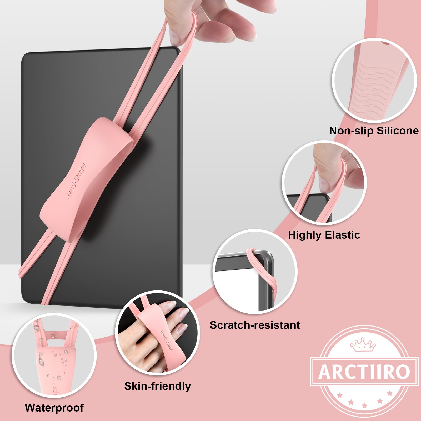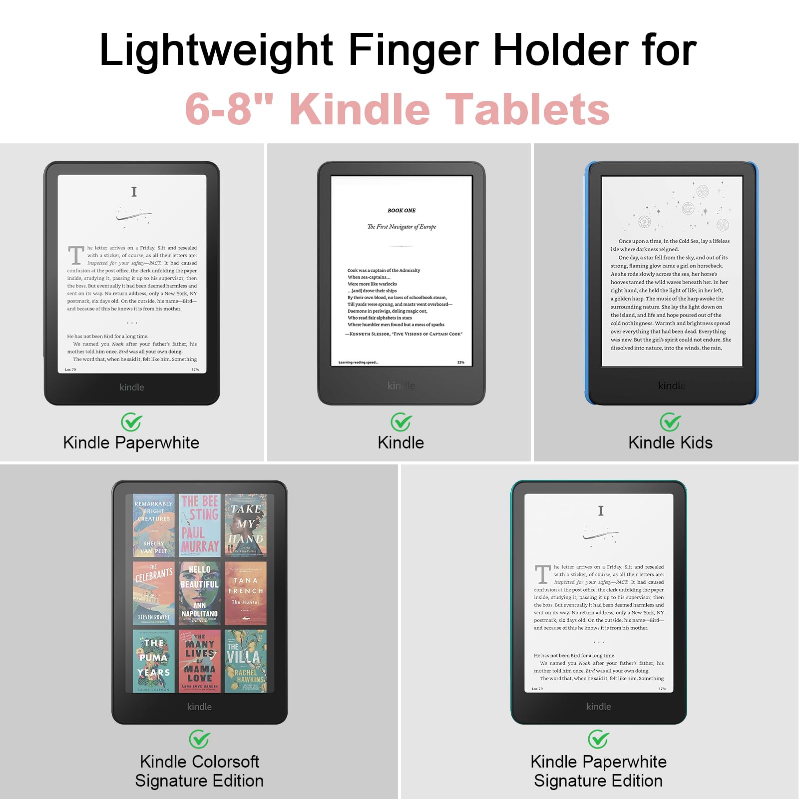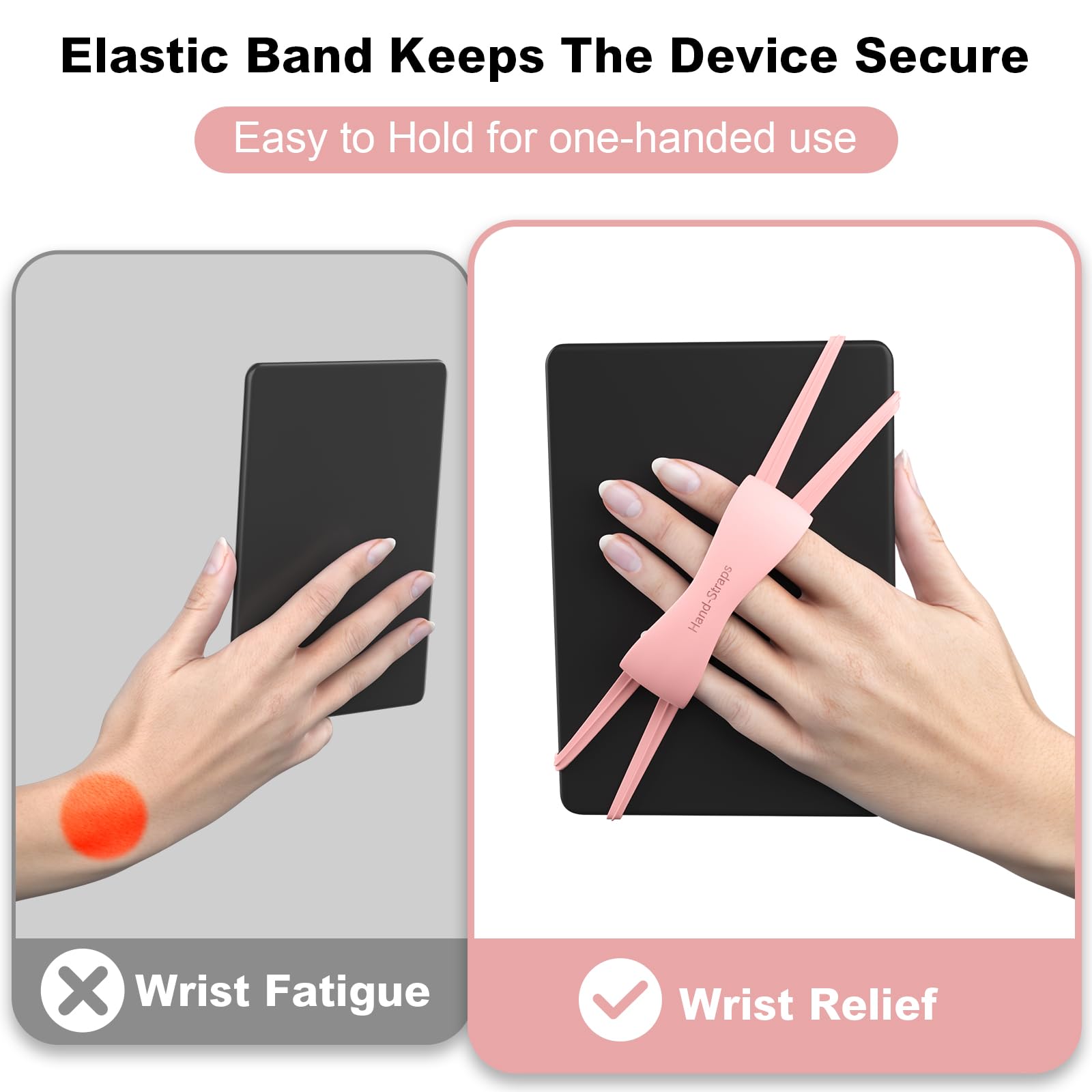 ✅ Universal 4-8" Grip for Kindle: 2 Pack kindle strap holder for hand effortlessly secure any device (4-8") with or without a protective case. Engineered kindle holder with stretchable silicone bands with anti-slip design, it adapts to Kindles, phones, tablets, and e-readers while protecting screens from scratches.