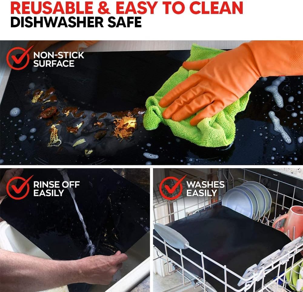 VERSATILE & MULTI-USE KITCHEN ACCESSORY - Removable and reusable, these liners wipe clean and rinse off effortlessly every time for convenient use. Best Oven Accessory to protect the bottom of the electric oven, toaster ovens, convection oven, protective grill mat sheet, liner for both electric and gas ovens, microwave ovens, kitchen stoves, toasters, grills, etc.