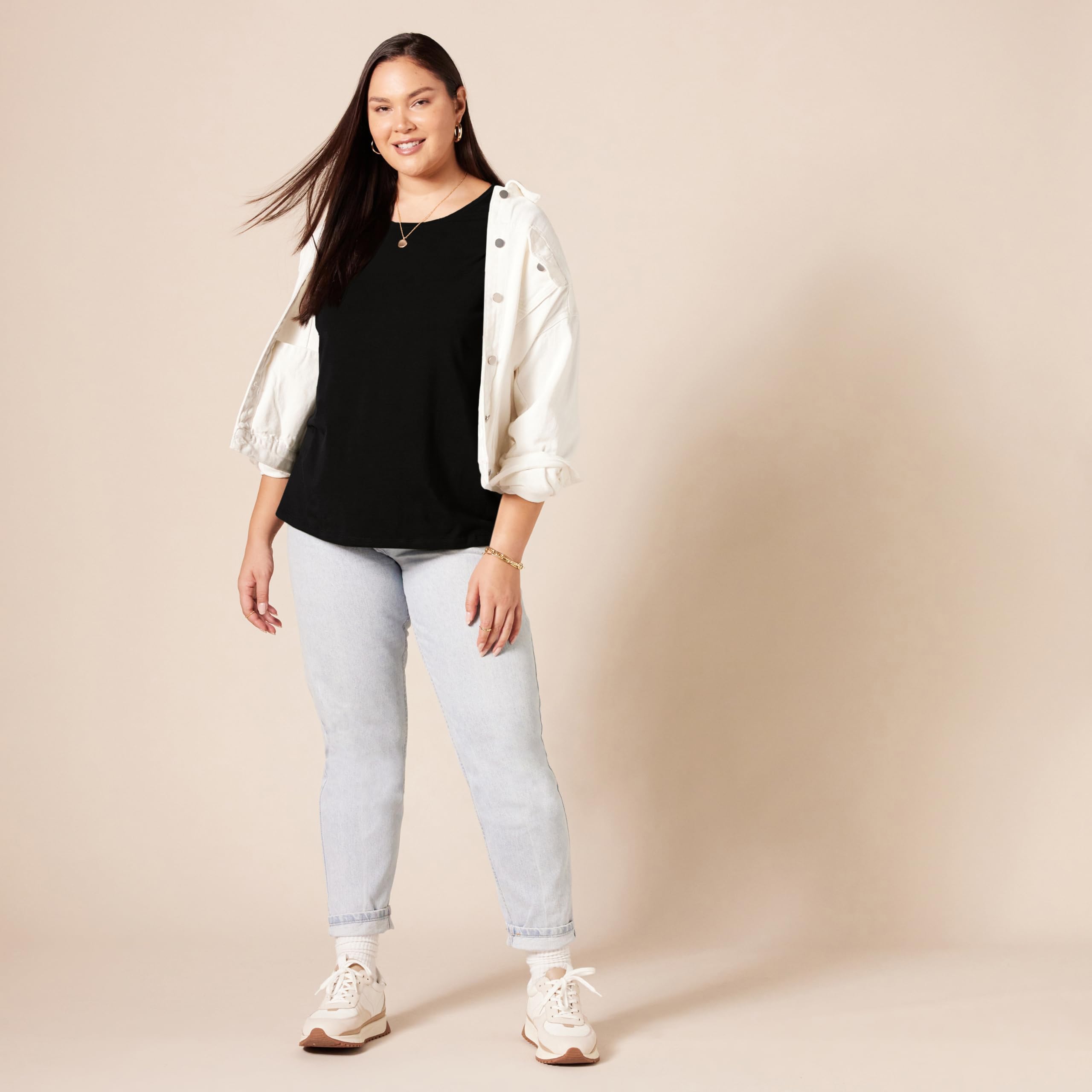ESSENTIAL T-SHIRT: This versatile t-shirt is a classic wardrobe essential, perfect layered under your favorite jacket or cardigan, or wear on its own for casual, everyday style