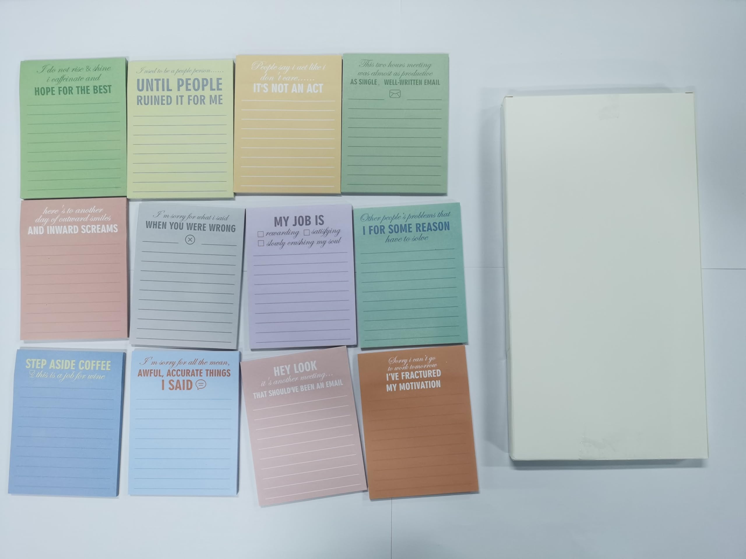 Funny sarcastic sayings: each note pad for work is designed with 1 piece of interesting information, the content of these messages is different, but they all use sarcasm to make fun of them, they are eye-catching enough to make your sticky funny notepad stand out; Copyright pending