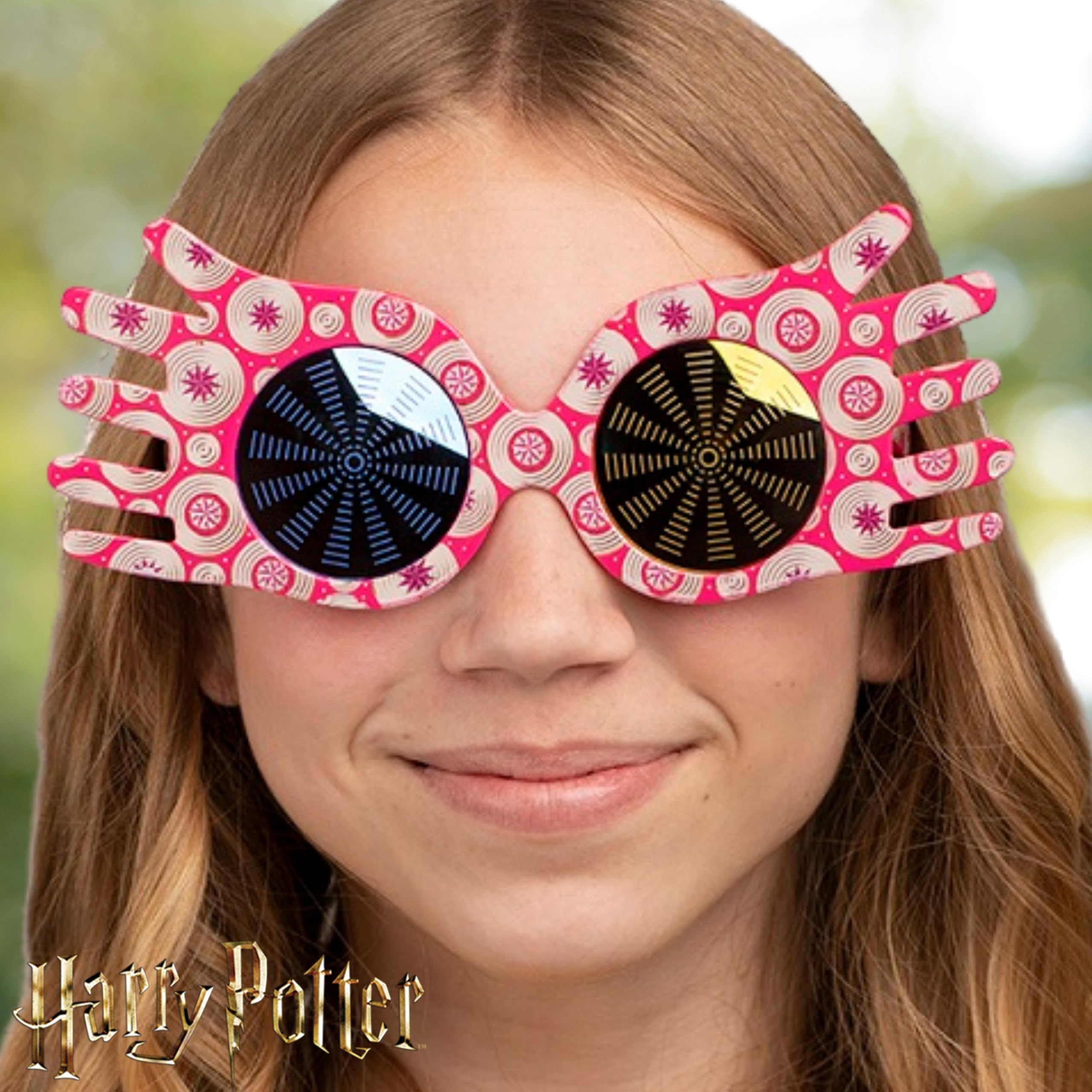 Description Bring a touch of magic to your outfit with a pair of Luna Lovegood Sun-Staches. With an odd sense of quirk and charm, these stylish shades are the perfect accessory for young witches and wizards. Whether you're representing Ravenclaw at the Quidditch field or casting your Hare Patronus you are going to want this stylish pair of Sun-Staches. Experience the ultimate in UV protection and durability with Sun-Staches Sunglasses. These durable glasses are life of the party and incredibly comfortable to wear, making them the perfect choice for instant fun and style. Whether you're looking to kick off a themed party or add a playful touch to your costume, Sun-Staches Sunglasses have you covered. Join the ranks of those who have witnessed our sunglasses on the hit show, Shark Tank, and discover the magic of our novelty sunglasses.