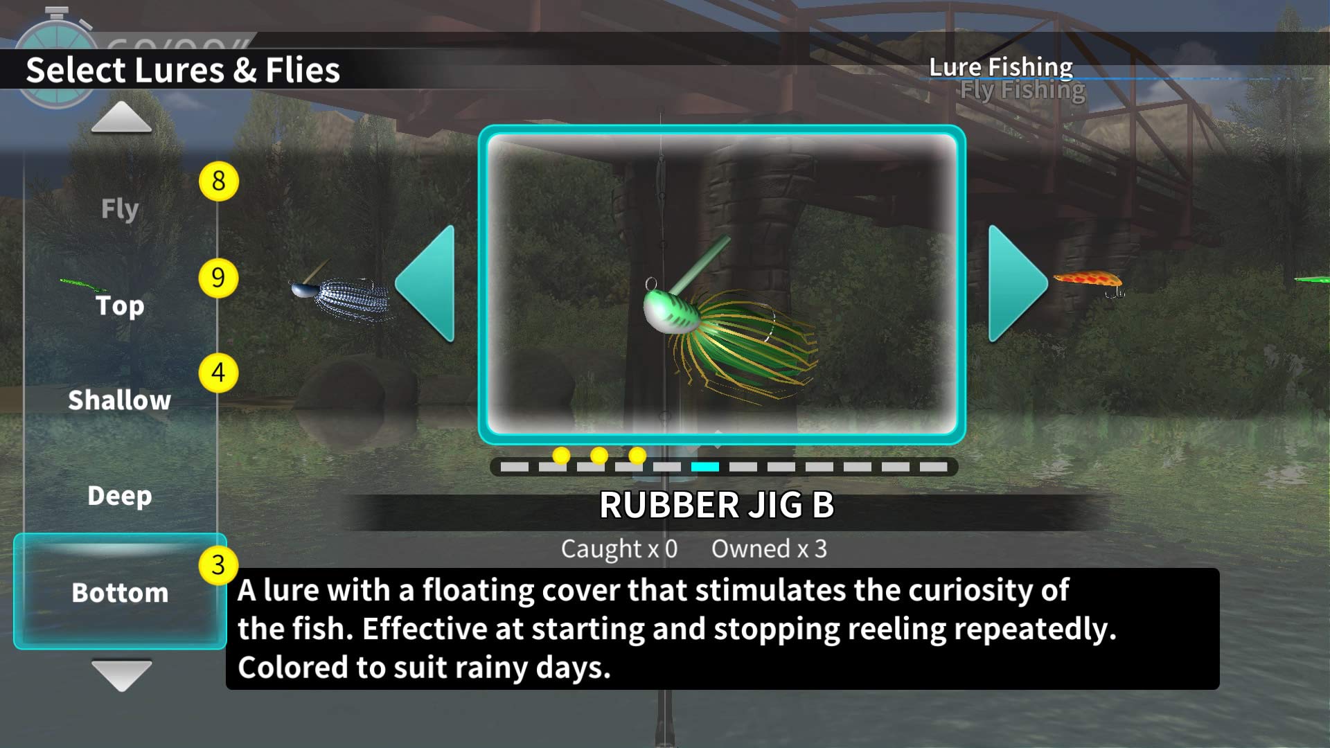 Perfect your techniques to unlock 10 different venues with varied fish in four seasons and different weather conditions.