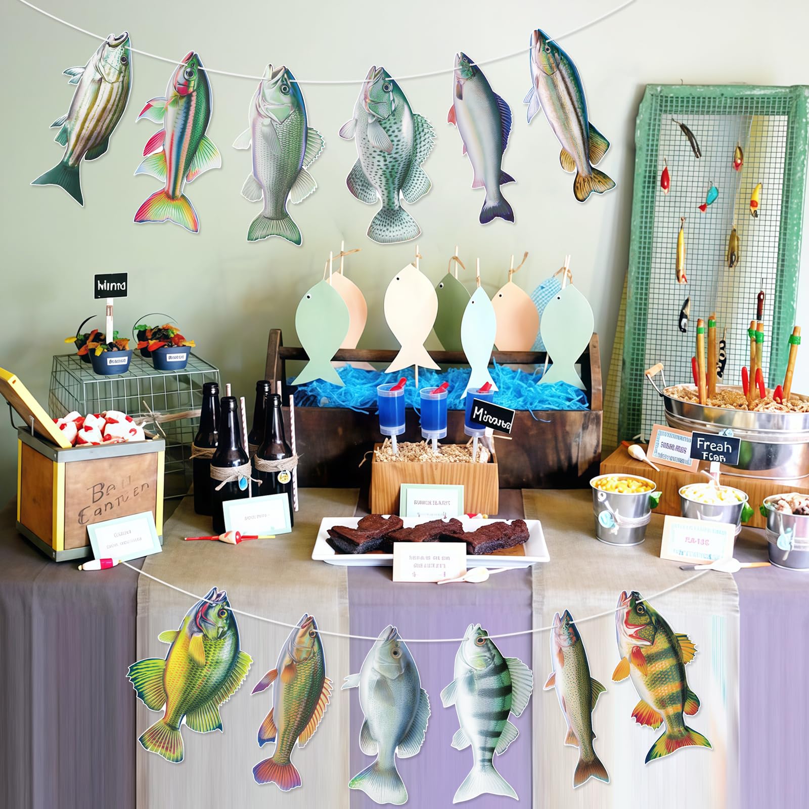 Universal: Fishing party sign to spice up your fishing party decorations. It can be easily added to any wall, fireplace, banister, window, gift dessert table, mantel, garden, living room, can also be used as a photo background