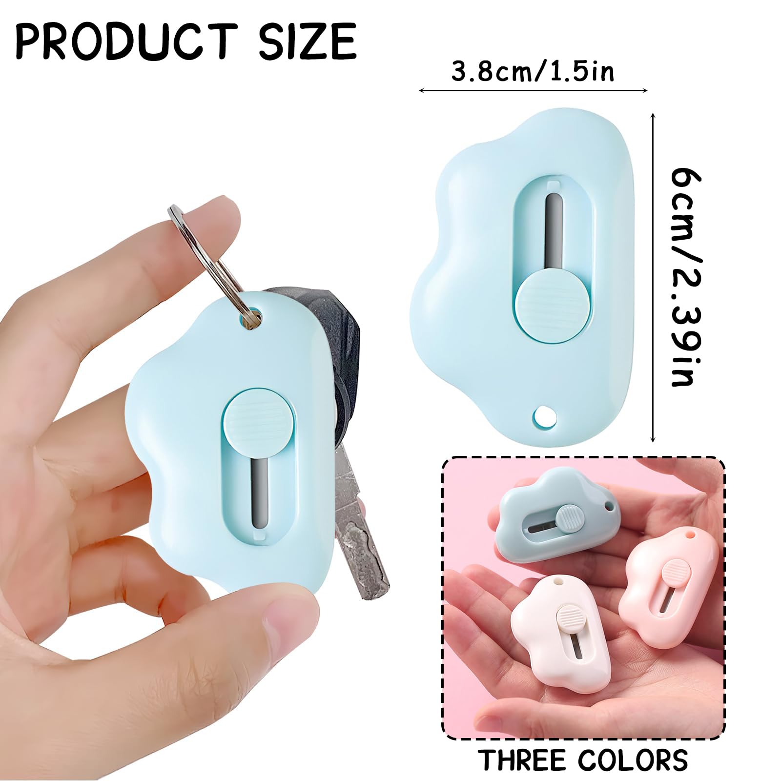 βπ¦ All-in-One Cutting Tool β Use it as a box cutter, envelope opener, mail slitter, or utility knife for crafts. Perfect for home, office, warehouse, or school use. ββοΈ Adorable Cloud-Shaped Design β Cute and functional! The compact cloud shape makes it fun to use and easy to spot in your drawer or bag. βπͺ Retractable Safety Blade β Features a retractable blade for safe storage and transport. Just slide it out when you need it, and retract when youβre done. βπ Built-in Keychain Hole β Lightweight and pocket-sized with a hole for attaching to your keys, lanyard, or backpack. Take it anywhere you go! βπ‘ Ideal for Everyday Use β A great tool for opening Amazon packages, letters, small boxes, and more. Makes a cute, practical gift or stocking stuffer.