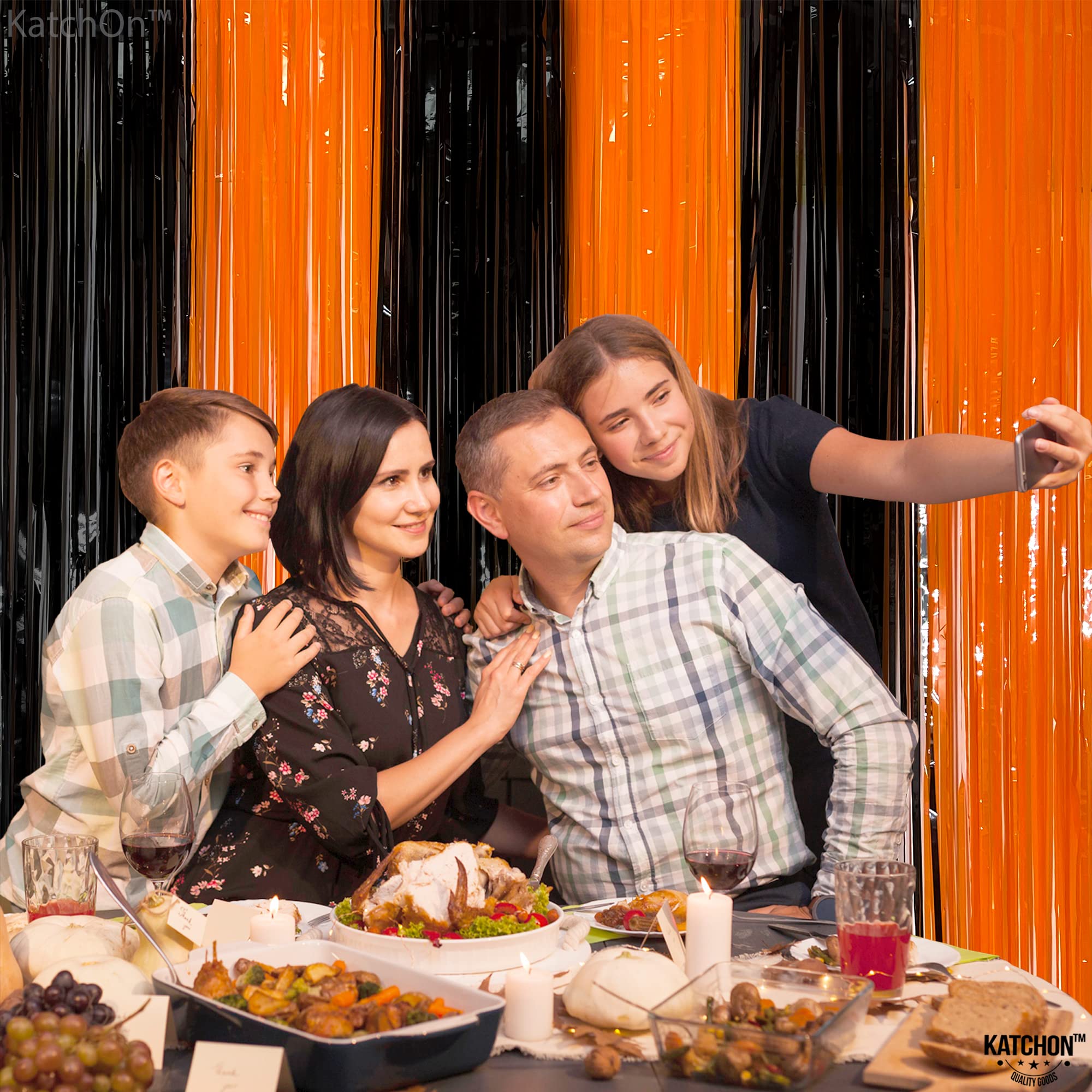 XTRALARGE | CREATE BEAUTIFUL HALLOWEEN STREAMERS : Looking for unique orange and black halloween decorations? This xtralarge black and orange foil curtain is perfect background for orange and black party decorations. With a touch of your creativity, you can make an elegant theme orange and black backdrop for basketball party decorations or halloween party decorations.