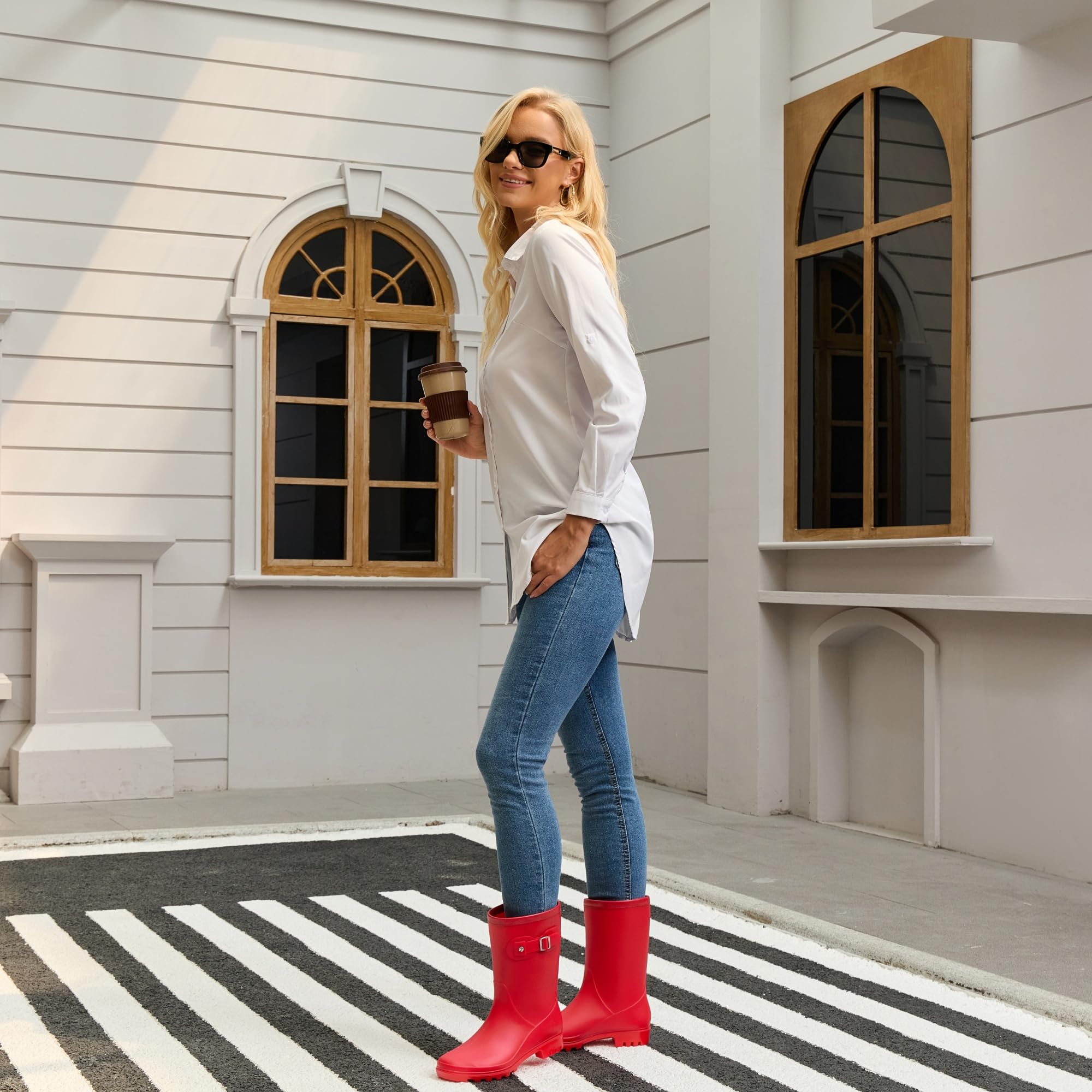 Feature matte shell rain boots in mid calf height.This model's boot opening ranges from 14.0" -16.0".