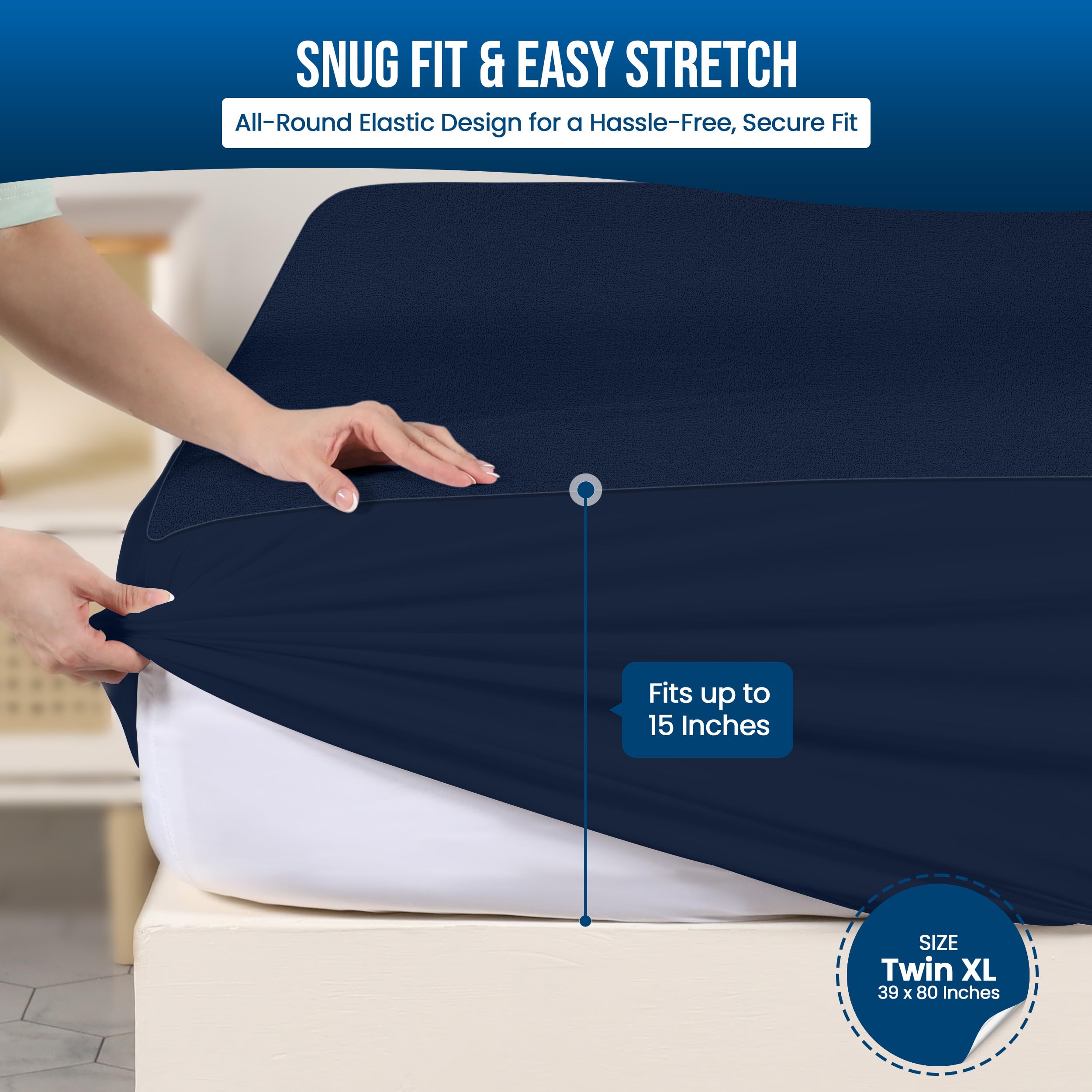 Mattress Protector - Fits Twin XL size mattress perfectly with dimensions 39 inches by 80 inches by 15 inches, featuring professionally turned hems and deep fitted pockets