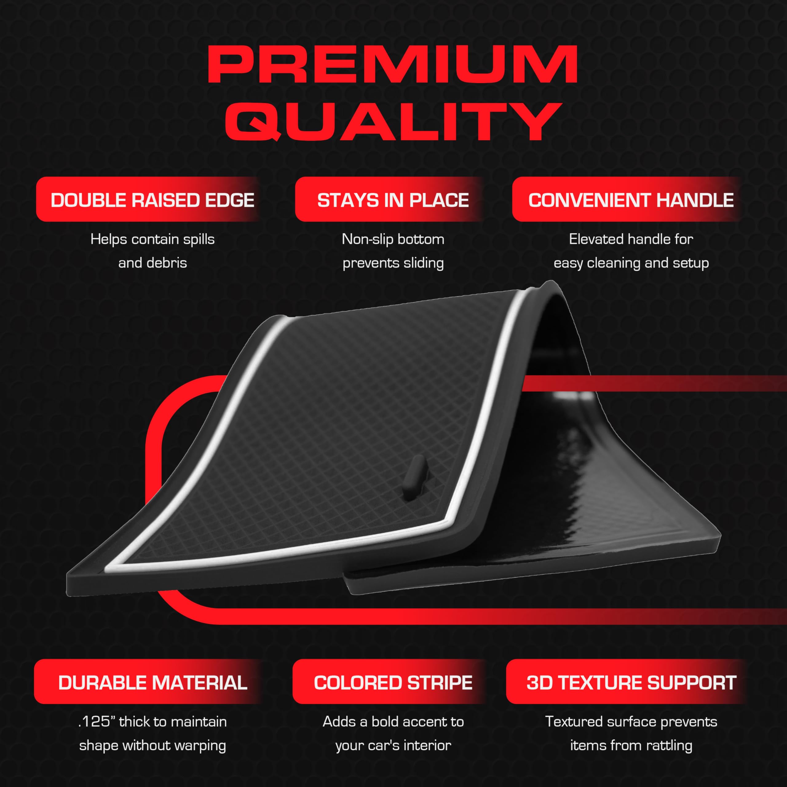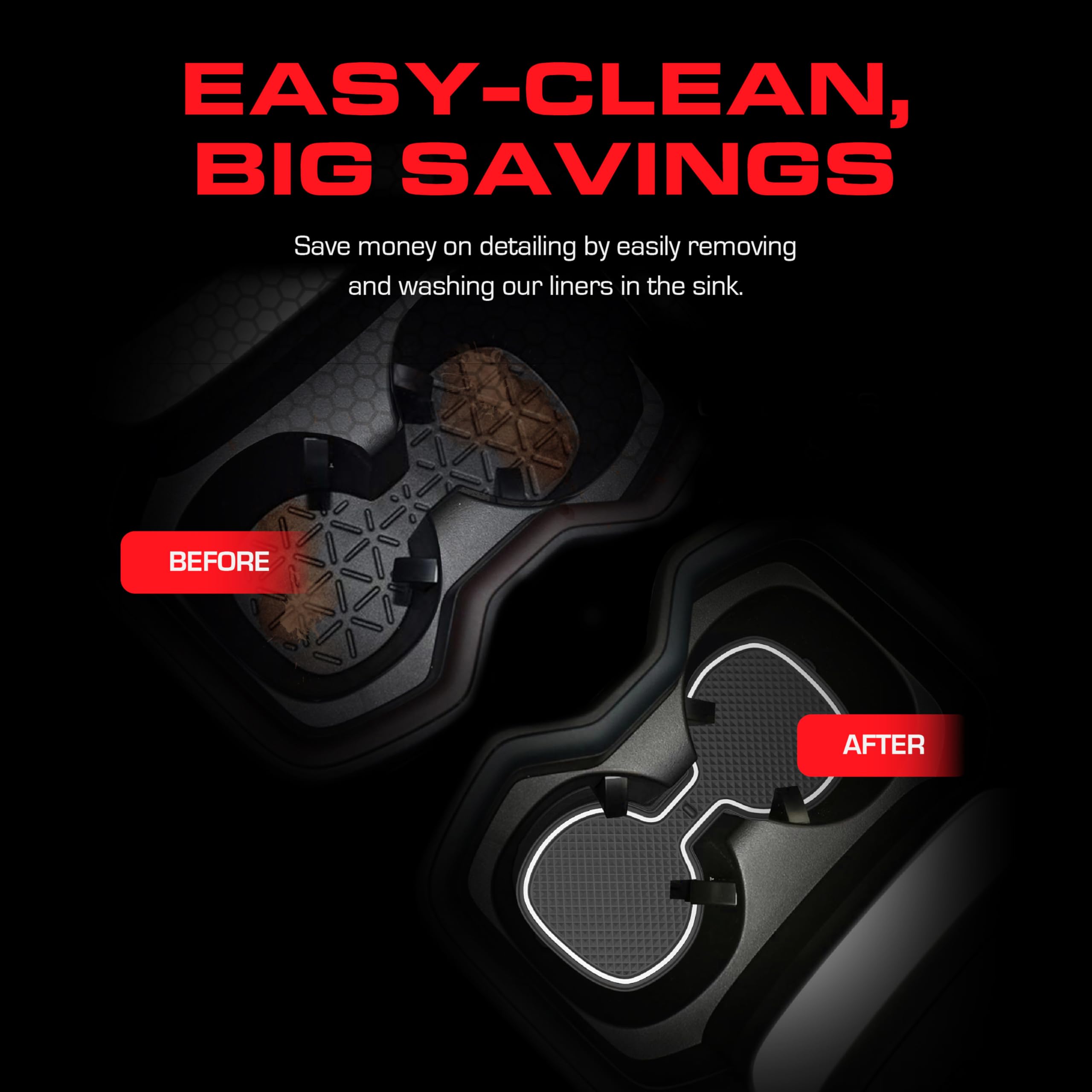 ✅SAVE TIME & MONEY ON CAR WASHES and detailing your Toyota 4Runner compatible interior. Our protective liners are specially designed with a 3D texture that catches spills and a double raised edge to contain them. The non-slip bottom clings to your cupholders and console areas so they stay in place when you lift up your slurpee, and the built in handle makes for easy removal and cleaning