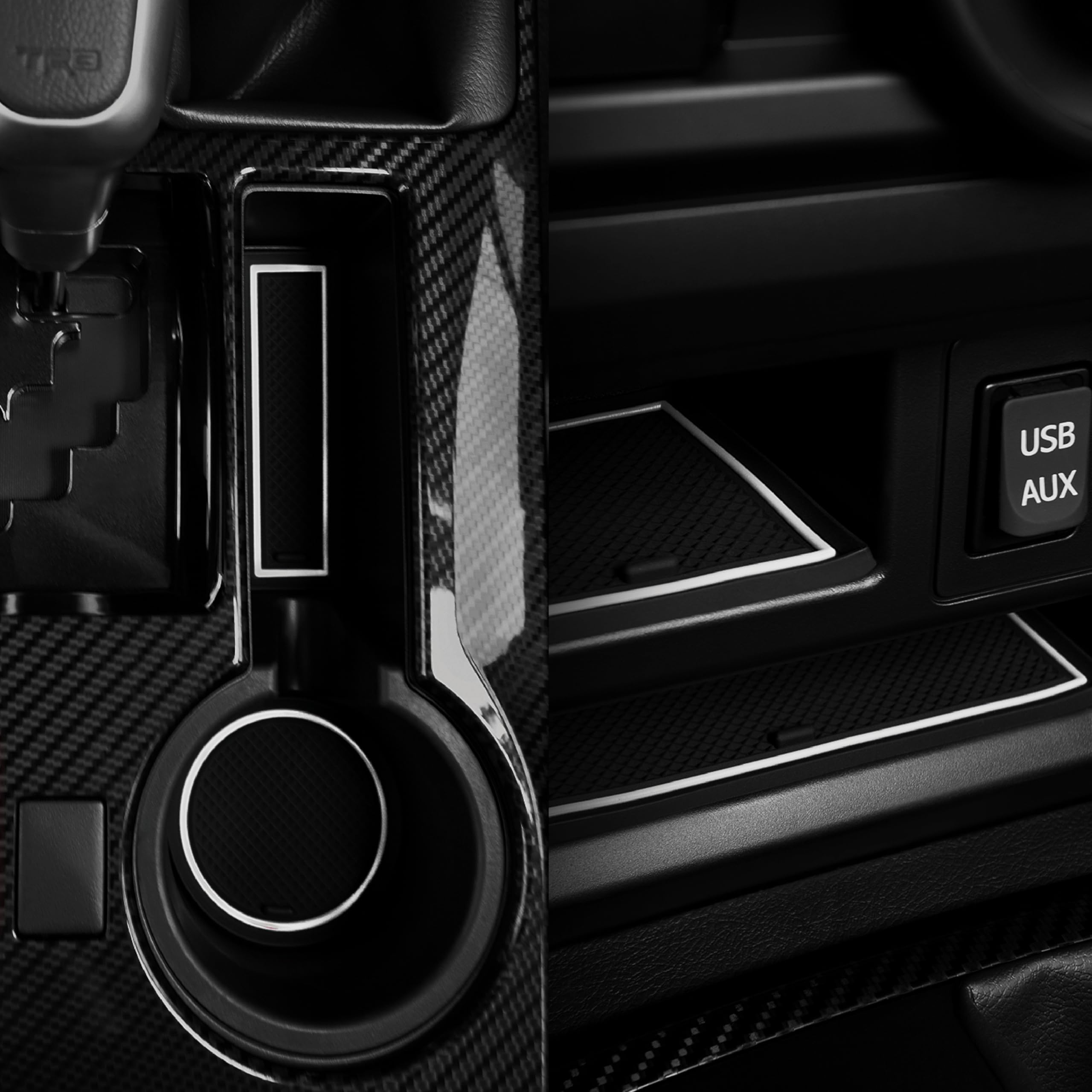 ✅NEW CAR LUXURY THAT LASTS - Our custom 4Runner compatible car interior liners and cup holder mats are engineered in the USA with a unique design that offers a precise fit you won't find elsewhere, perfectly placed tab handles for easy removal, a sleek mods look without logo designs that gather grime, and a patented all-weather material that withstands heat up to 170 degrees without the “rubber tire” smell
