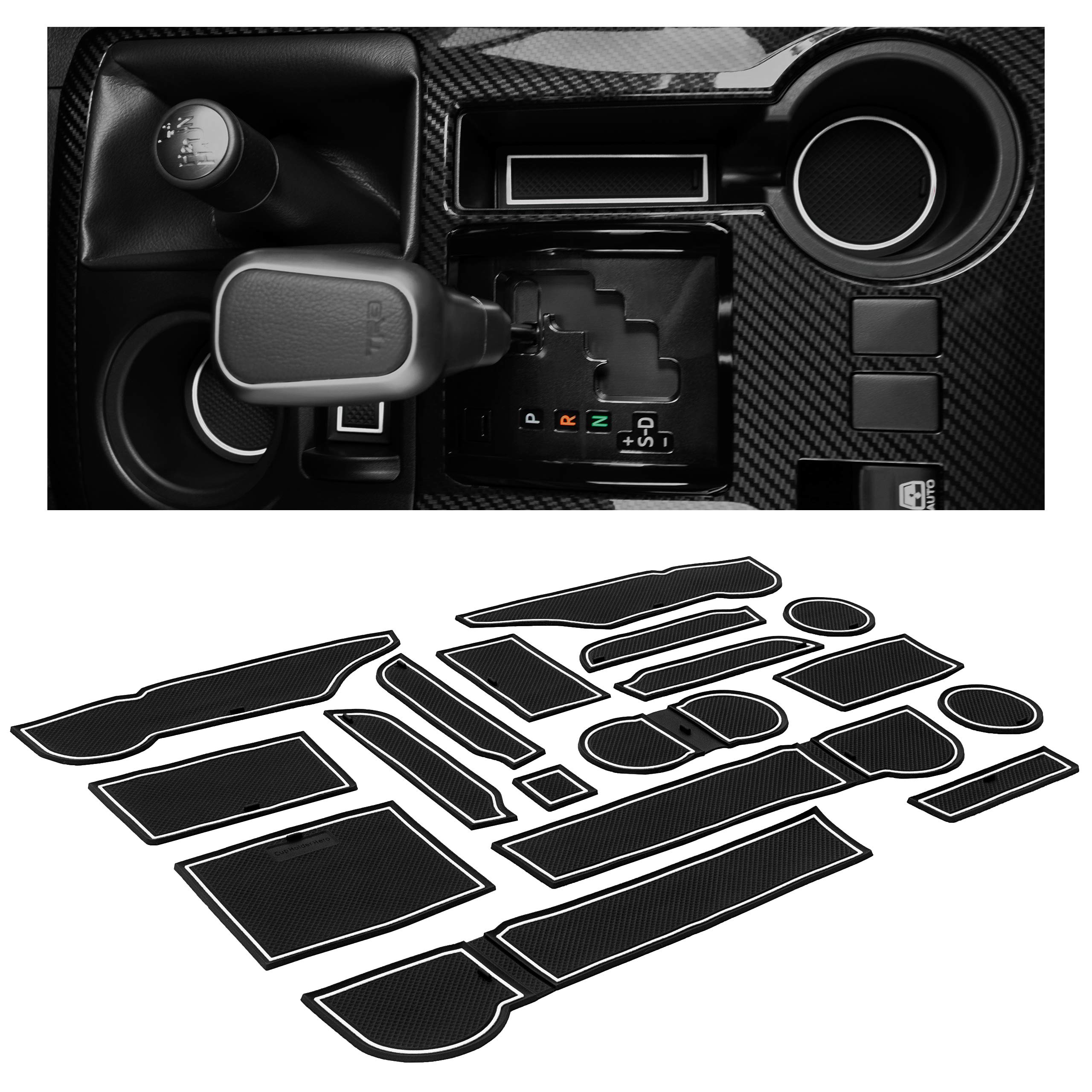 CupHolderHero Fits Toyota 4Runner 2010-2023 Accessories - Custom Non-Slip Anti-Dust Cup Holder Inserts, Center Console Liners, Door Pocket Mats, Interior Protection, 29pc Set, 3 Rows White Trim