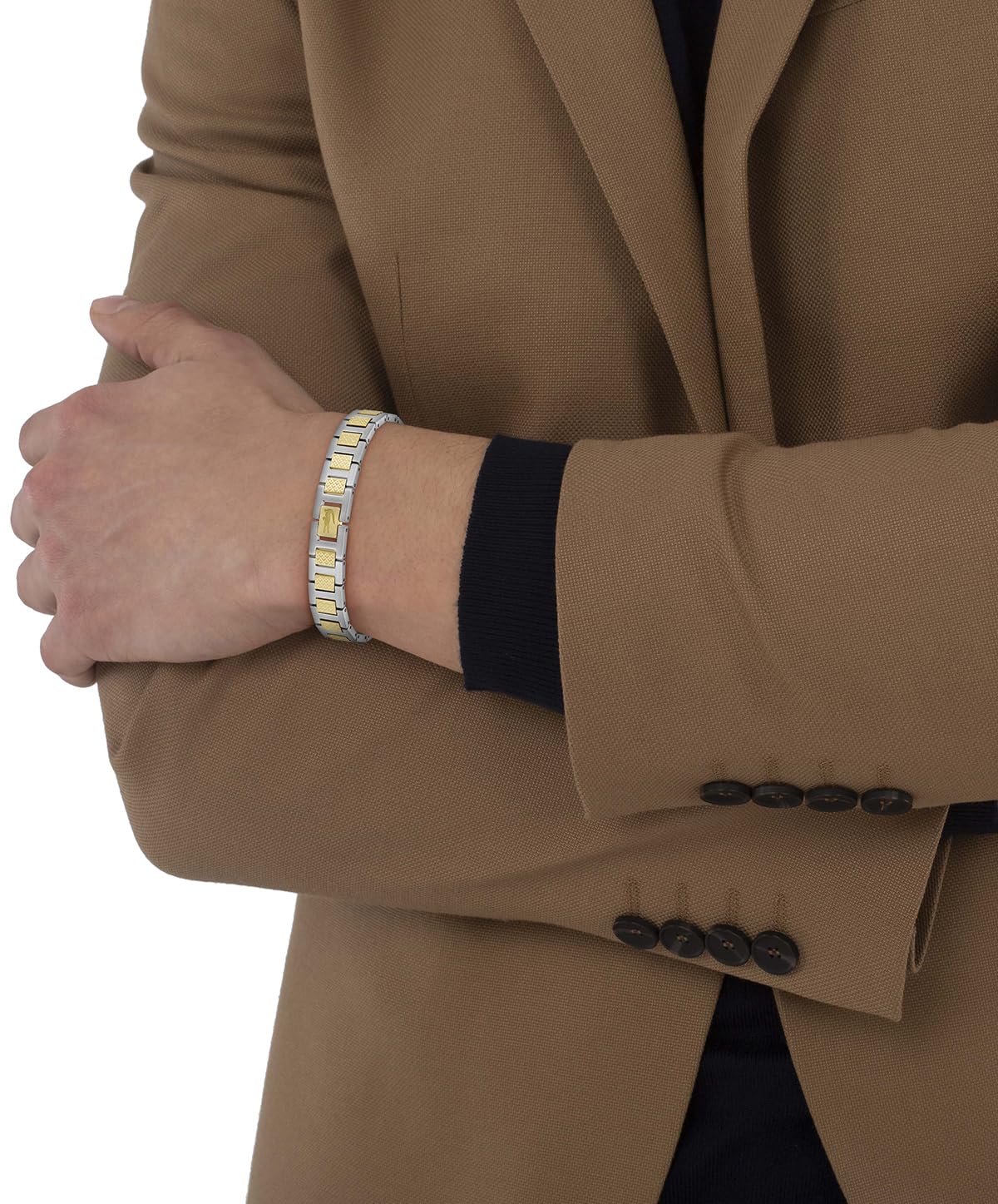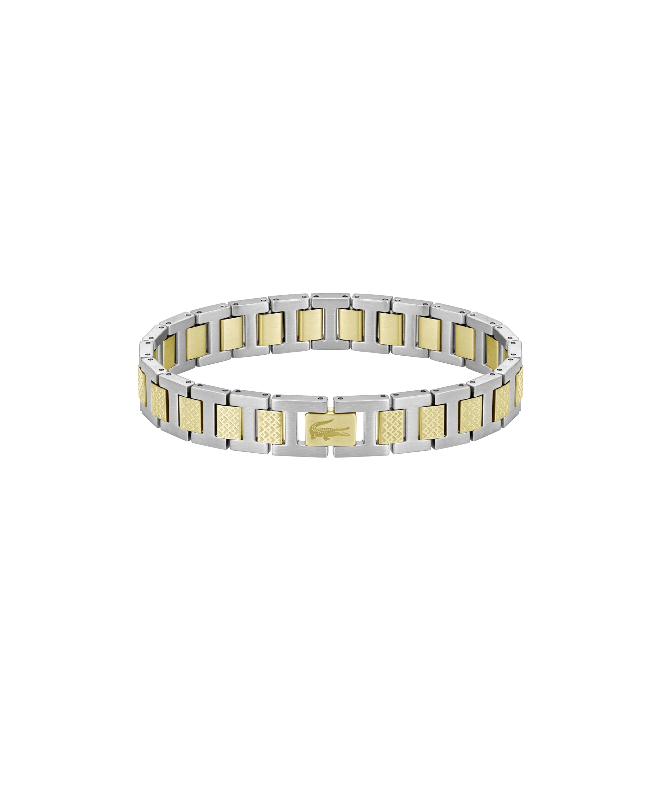 The Metropole bracelet showcases iconic Lacoste DNA with elegant H-links, petit piquรฉ center links, and an etched crocodile clasp. Its polished and etched finishes catch the light, offering a refined, versatile piece to elevate any outfit.