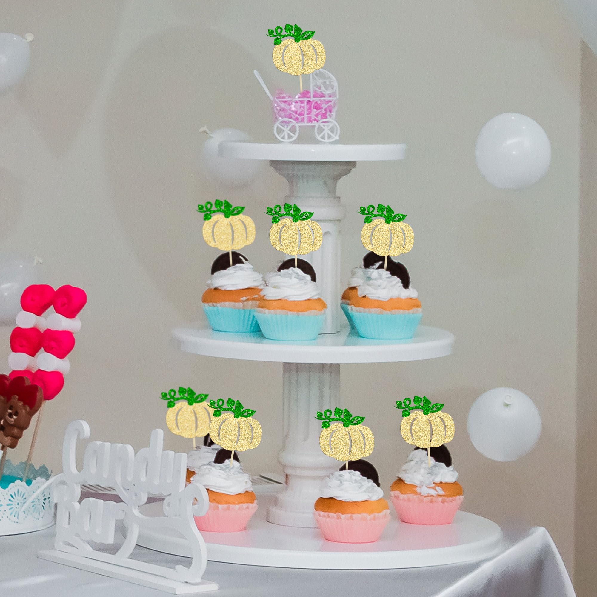 -These Pumpkin Cupcake Toppers are so cute and good for Halloween theme baby shower party, pumpkin theme birthday party, fall theme party, gender reveal party, kids birthday theme party cupcake decorations. They can make your cupcake more attractive and bring the fun to your party. You can also apply them for ice cream, fruits, cookies and other desserts.