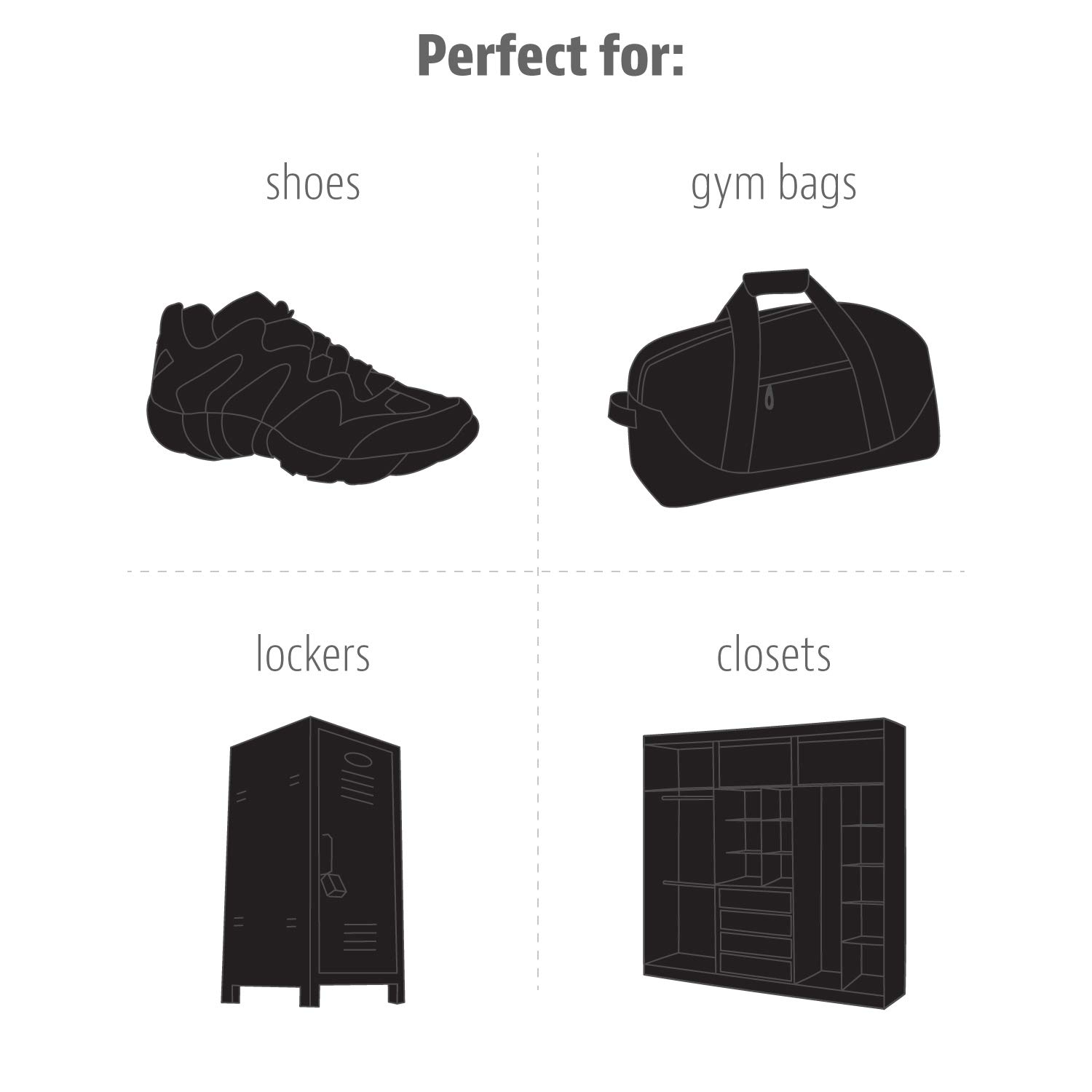 VERSATILE FIT & USE: Compact sneaker ball design fits most places. Perfect shoe smell remover for all footwear, gym bags, lockers, and closets. Ideal for combating gym odor and keeping athletic gear fresh. Use anywhere odors linger.