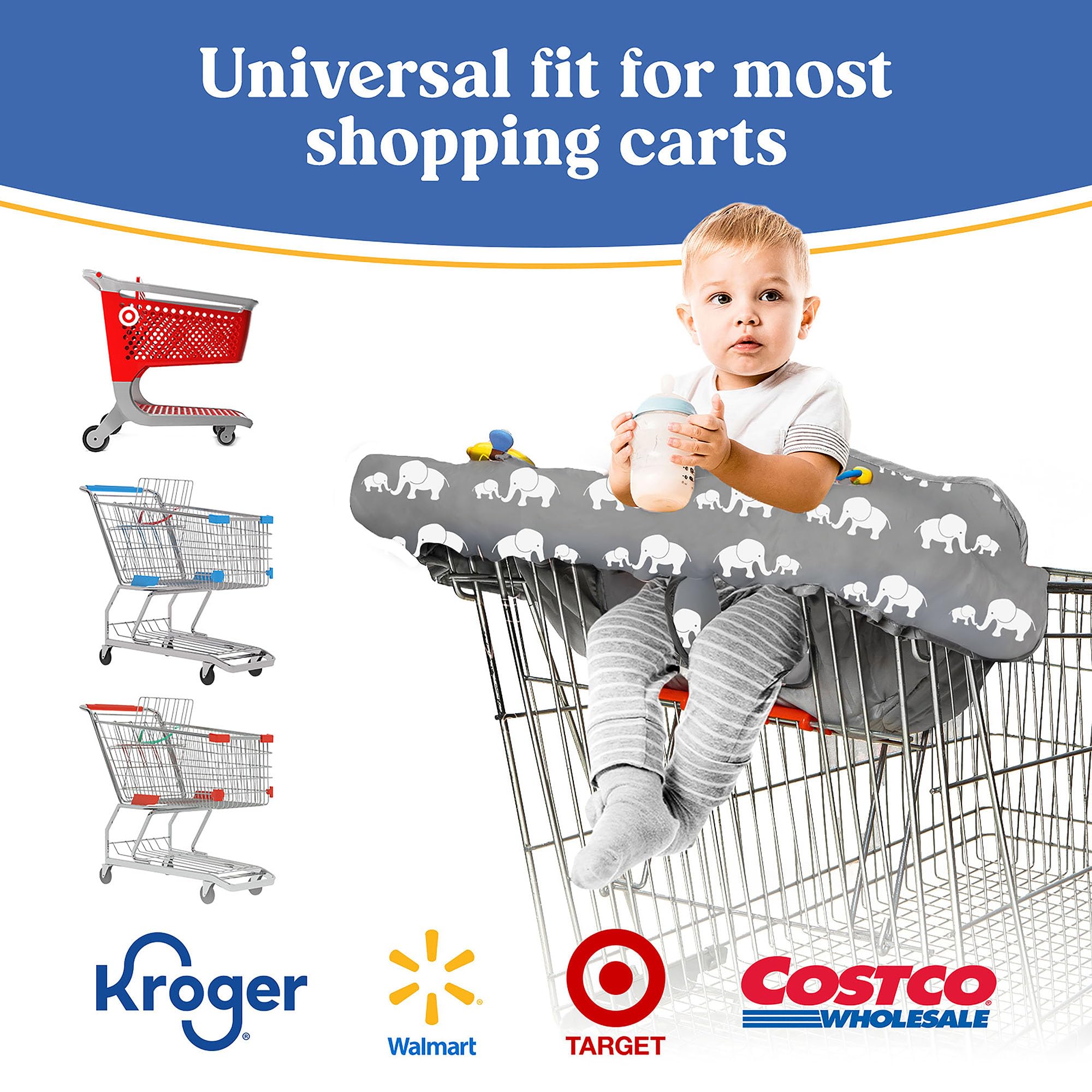 🛒Safety Always Comes First: The anti-slip bottom pad helps secure your baby in place, along w/ the safety belt harness & buckle so the cover stays in the cart. This adds to your peace of mind so that your child is safe & your baby supplies are securely intact.Our seat protector also fits most shopping cart sizes & types. So whatever your favorite grocery store is, carrying this Pillani shopping cart cover will always come in handy.Installation only takes a few seconds, even when carrying a baby