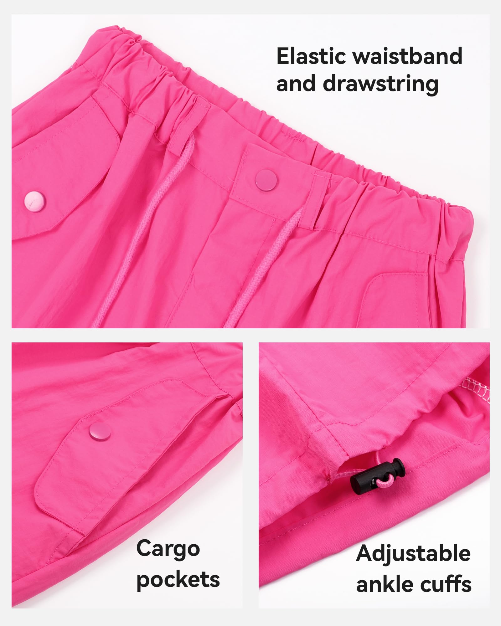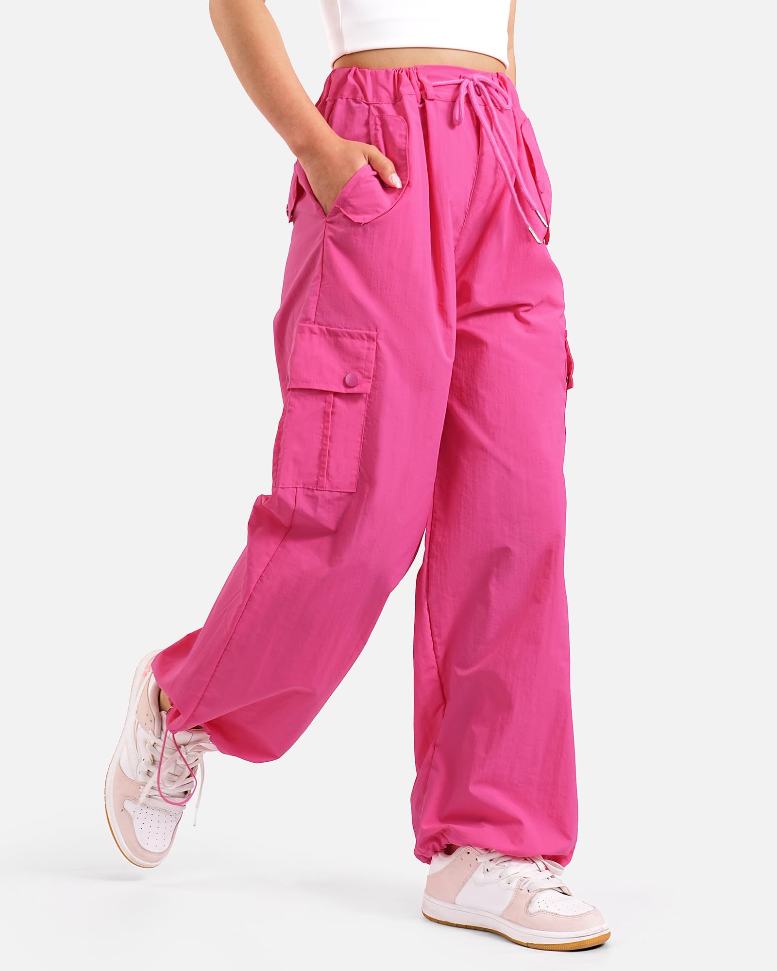 DESIGN: With the elastic waistband and drawstring, the baggy cargo pants are suitable for different body types. The cargo pants for girls have elastic ankle cuffs that loosen and tighten to get wide leg pants or tapered pants