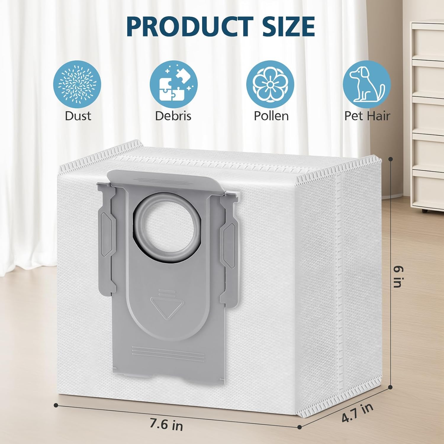 【3.6L LARGE CAPACITY REPLACEMENT BAGS】: The size of each Q10 S5+ dust bag is 7.6 x 6.1 x 4.7 inches, holds a 3.6L large capacity. Leave enough space for all naughty particles. Can store up to 7 weeks of debris, creating a tidy environment for you and your loved one