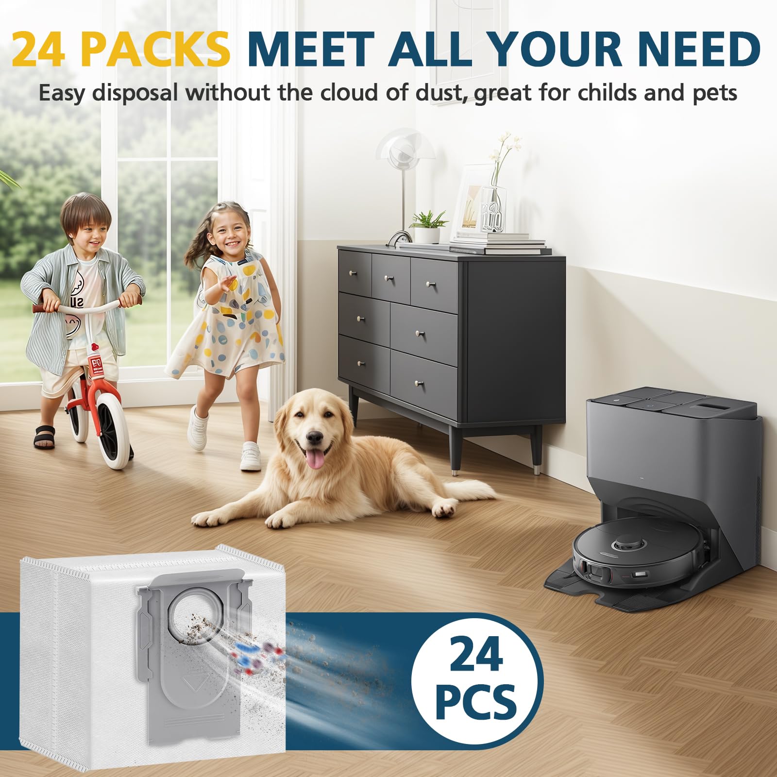 【VALUE PACKAGE】: S7 Pro Ultra automatic dirt disposal bags contains 24 dust bags for roborock S7 Pro Ultra, which can meet your long-term replacement needs. If you have any problems with our products, please contact us, we will help you to solve the problems immediately