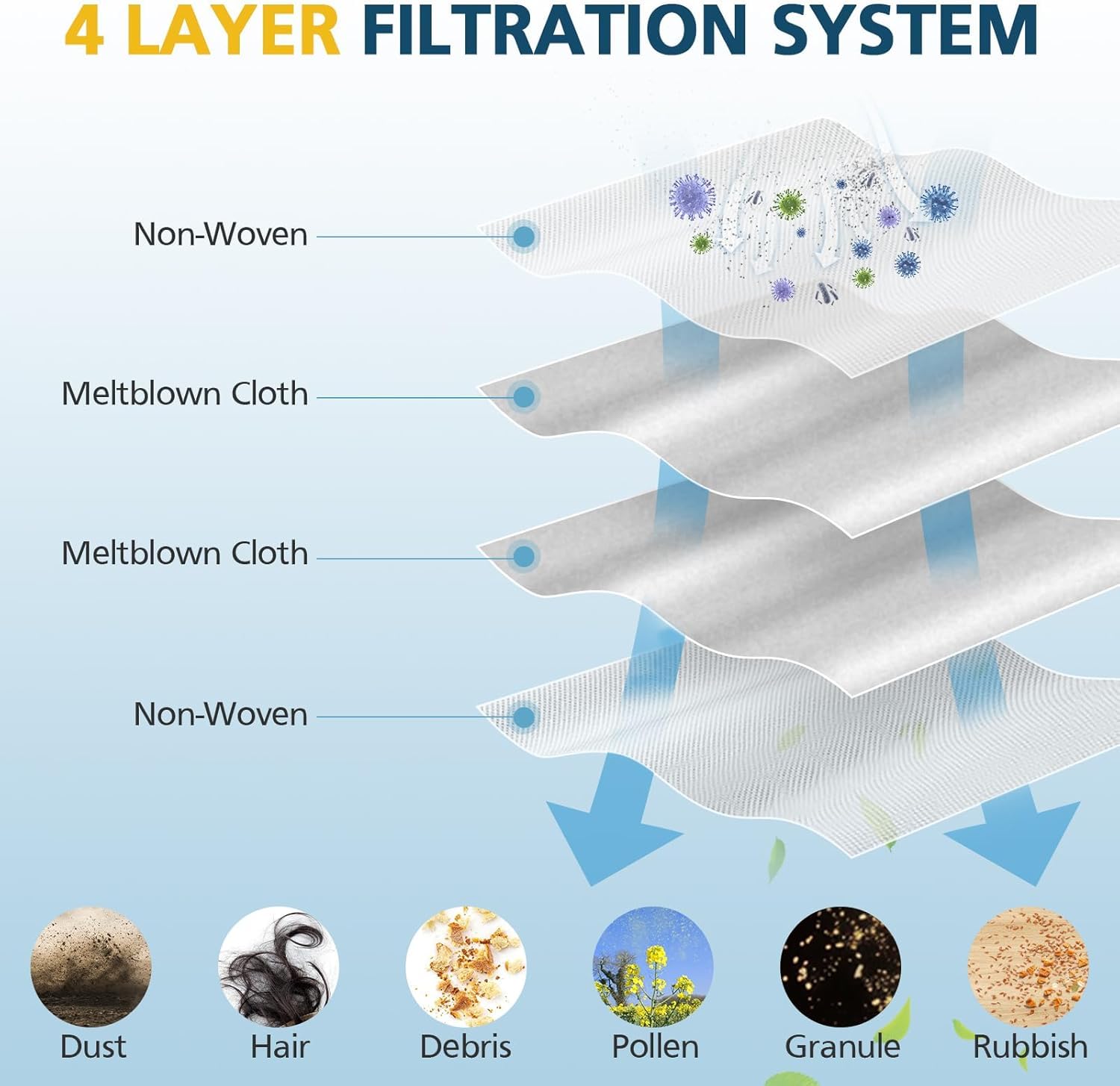 【HIGH-EFFICIENCY FILTRATION】: These Q5 Max+ dust bags are made of 2-layer superfine melt-blown fiber filter and 2-layer non-woven fabrics, which can work for 99.97% of dirt, detritus, and other particles down to 0.3 microns. Great for family with pet and child, easy to get a clean and cozy space for your family