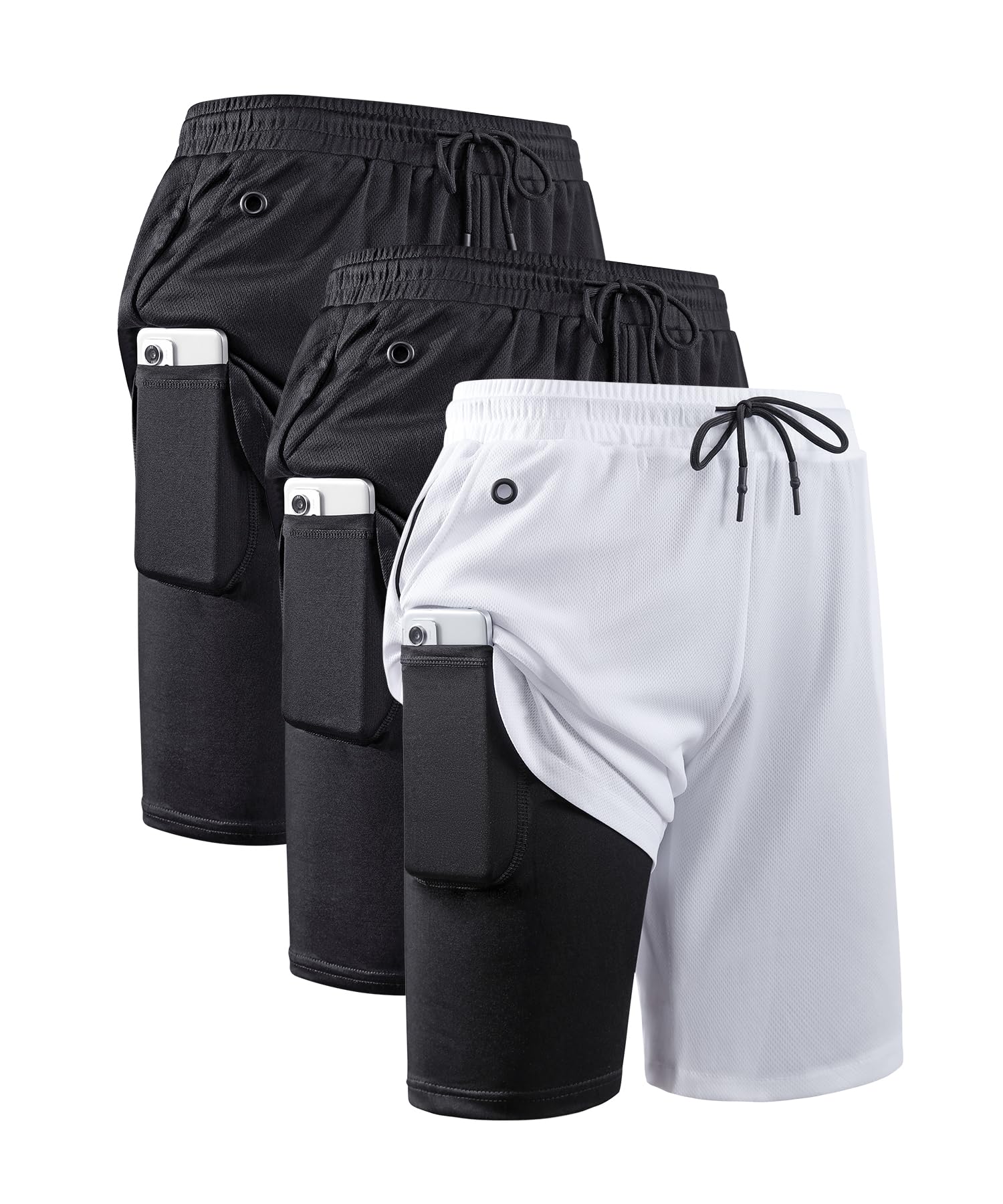 MATERIAL:Our 2 in 1 gym shorts for men are made of high quality elastic high grade fabrics,comfortable and soft,perfect fit,and have excellent anti pilling ability,quick drying,breathable,high moisture absorption,and bring you a light and comfortable feeling during fitness.