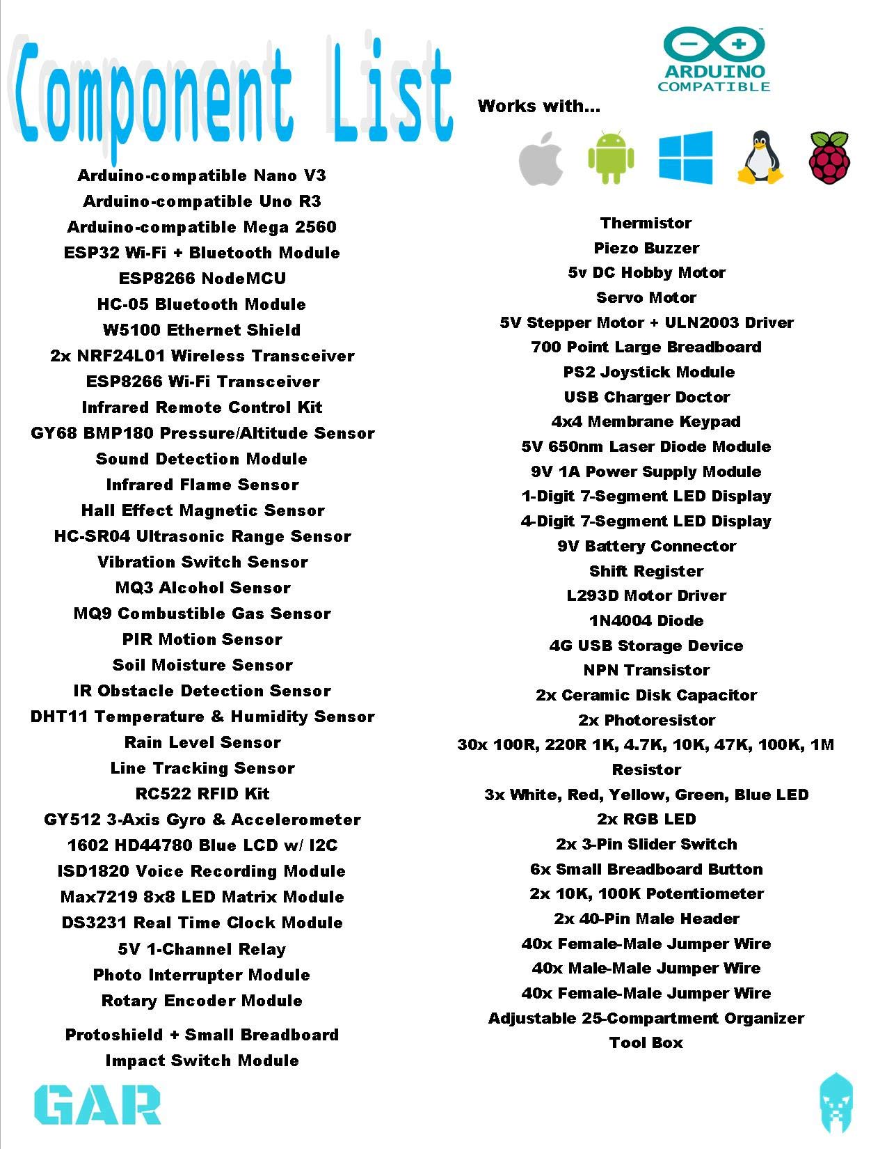 All-in-one bundle with extra accessories + 16G USB storage with free access to the GAR Dropbox Cloud including PDF guides & links to tutorials and videos to help you learn to program all the parts and get started quickly