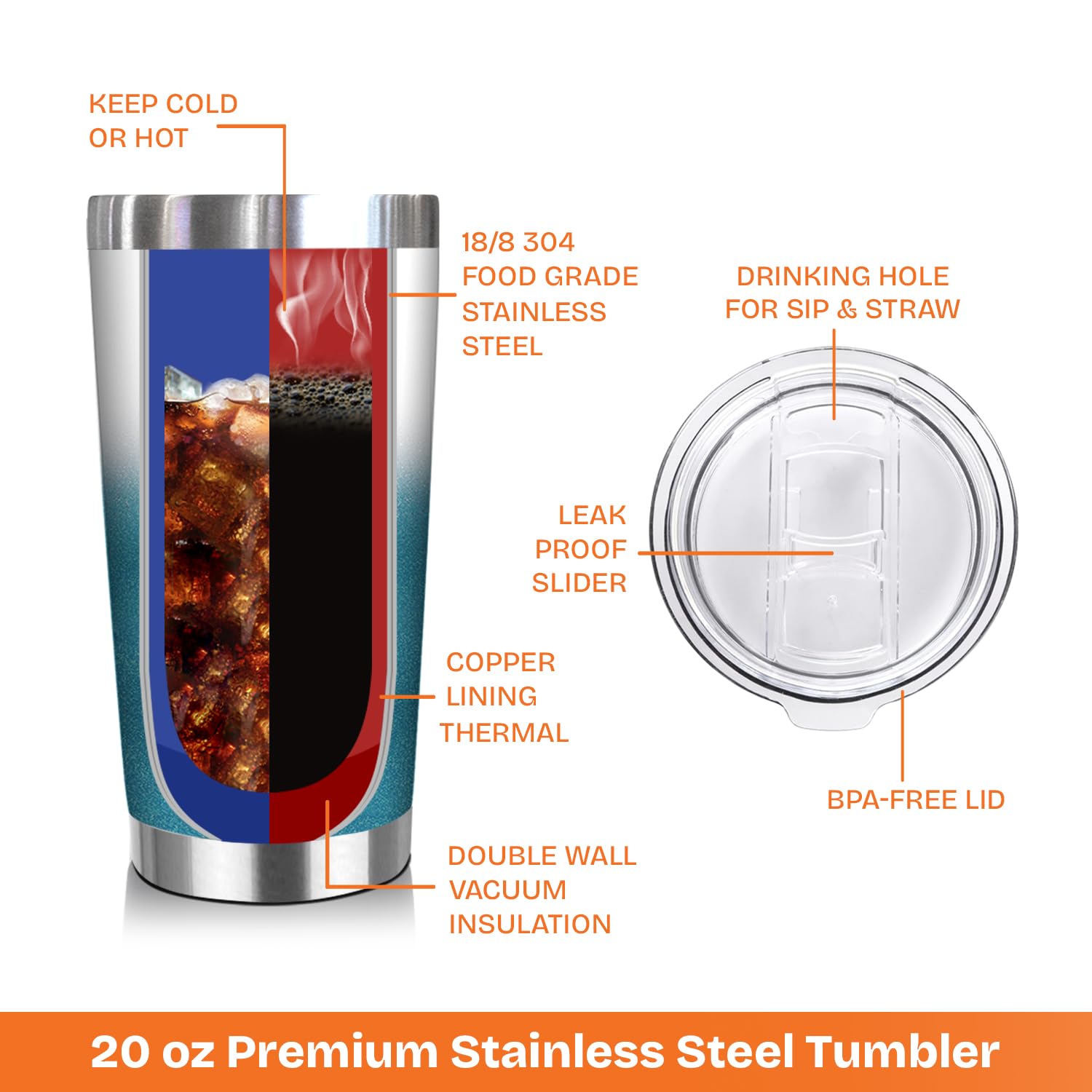 Double-Wall Vacuum Insulation - We use double-wall insulation to help retain hot and cold liquid temperatures, which makes our wine tumbler also great for water, coffee, cola, beer, juice, tea, ice cream, cocktails and more.