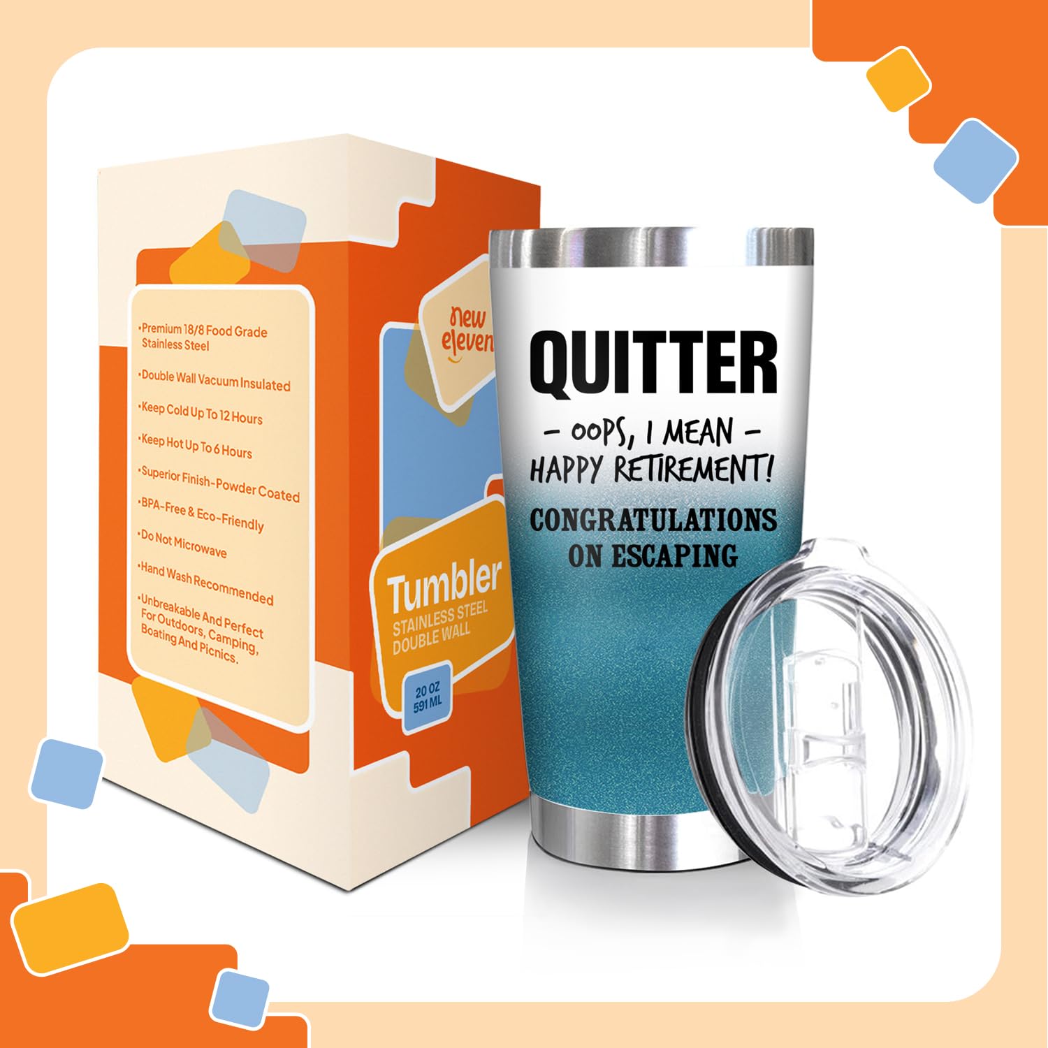 Convenient And Leak-Proof - Let your coworker, friends, her, him enjoy their favorite drinks no matter where they are with the best gifts for retirement. Sturdy and leak-proof, it’s great for both outdoor and indoor use.