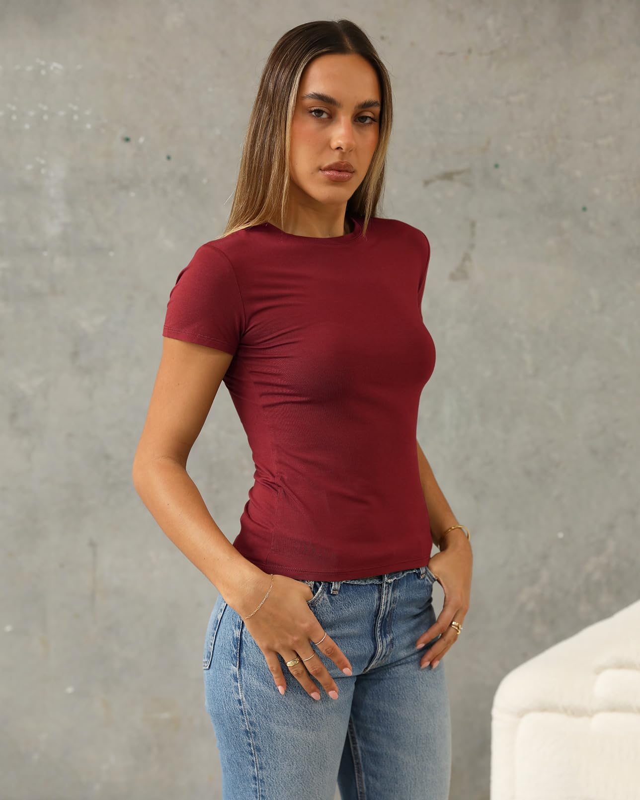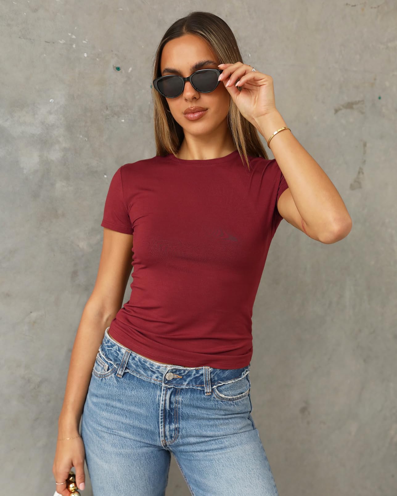 Design: Going out tops for women. Sexy shirt, cropped length, slim fit tops, y2k tops,short sleeve, crew neck, solid color, plain undershirt, perfect matching with cargo pants. This tee shirt is the must-have item in your wardrobe