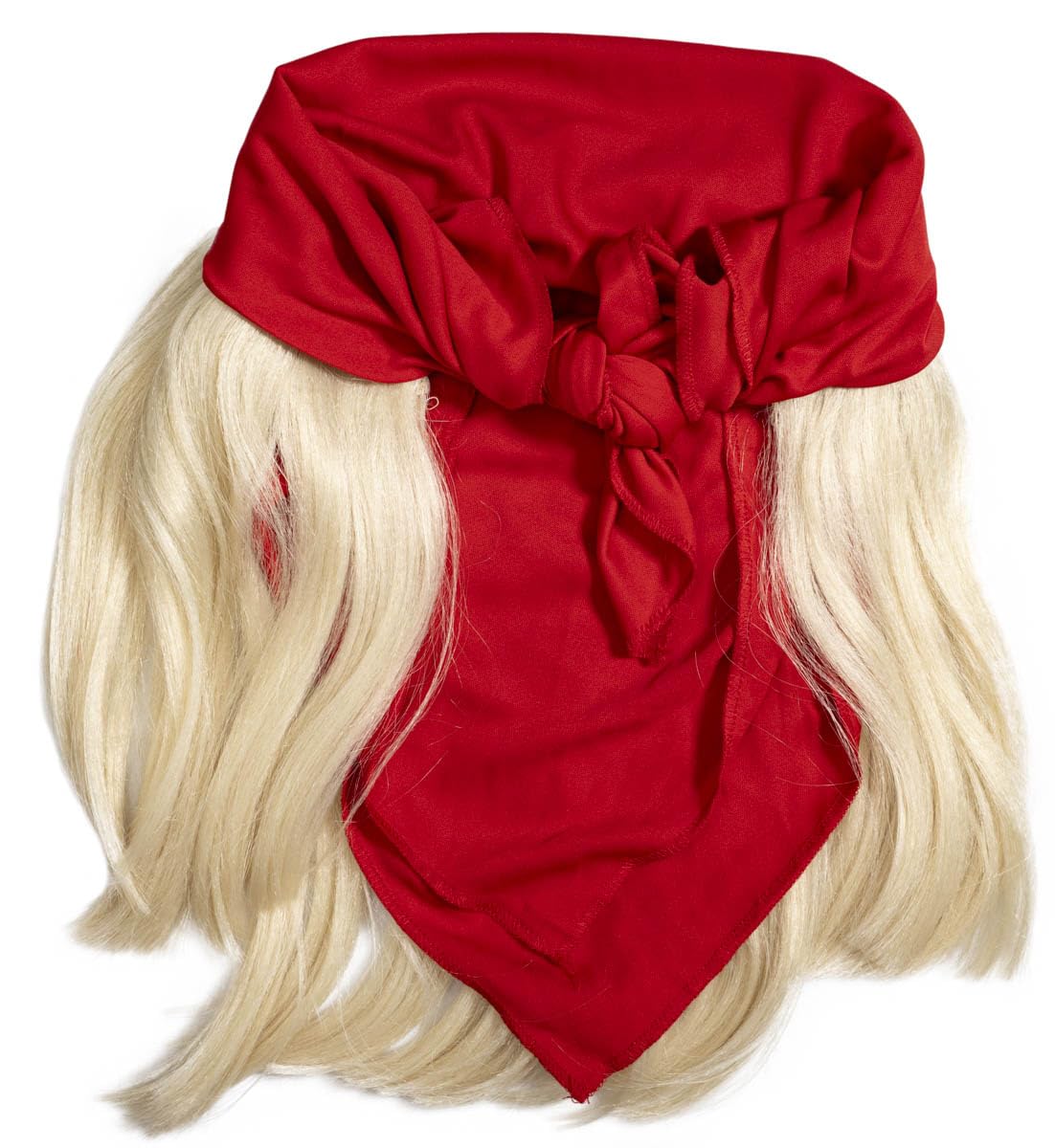 Playful Flair: Red bandana features an attached blonde wig, adding an element of playful style.