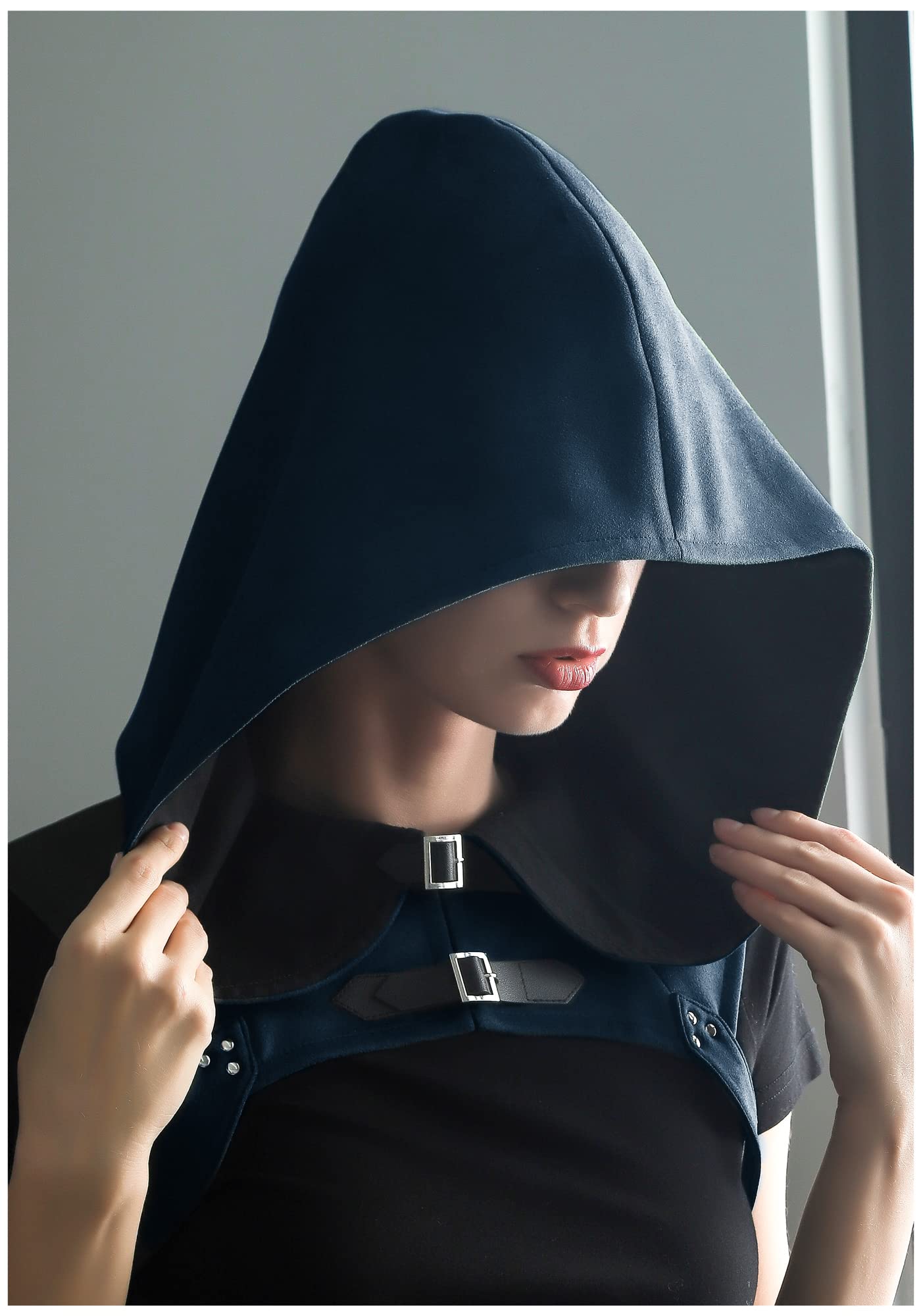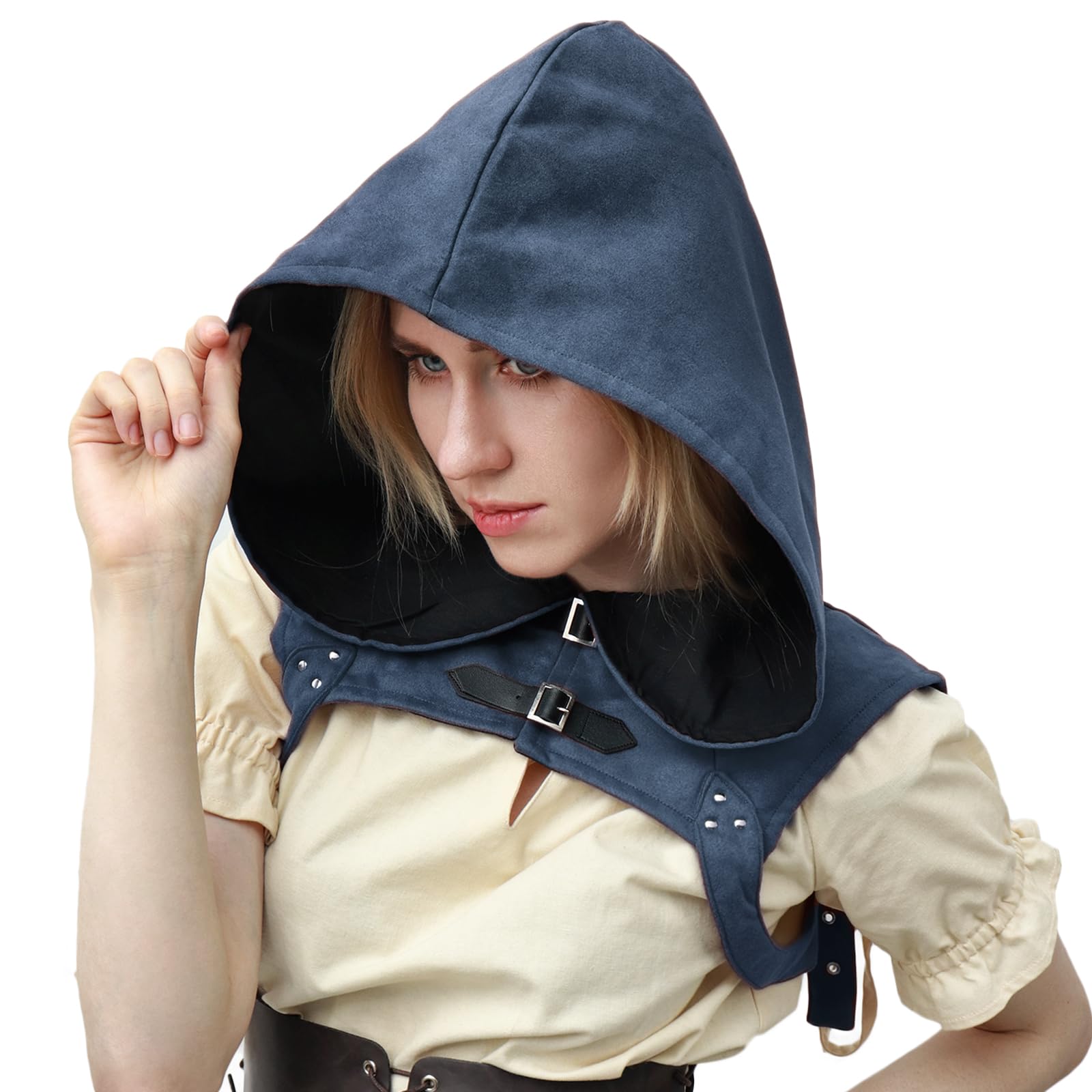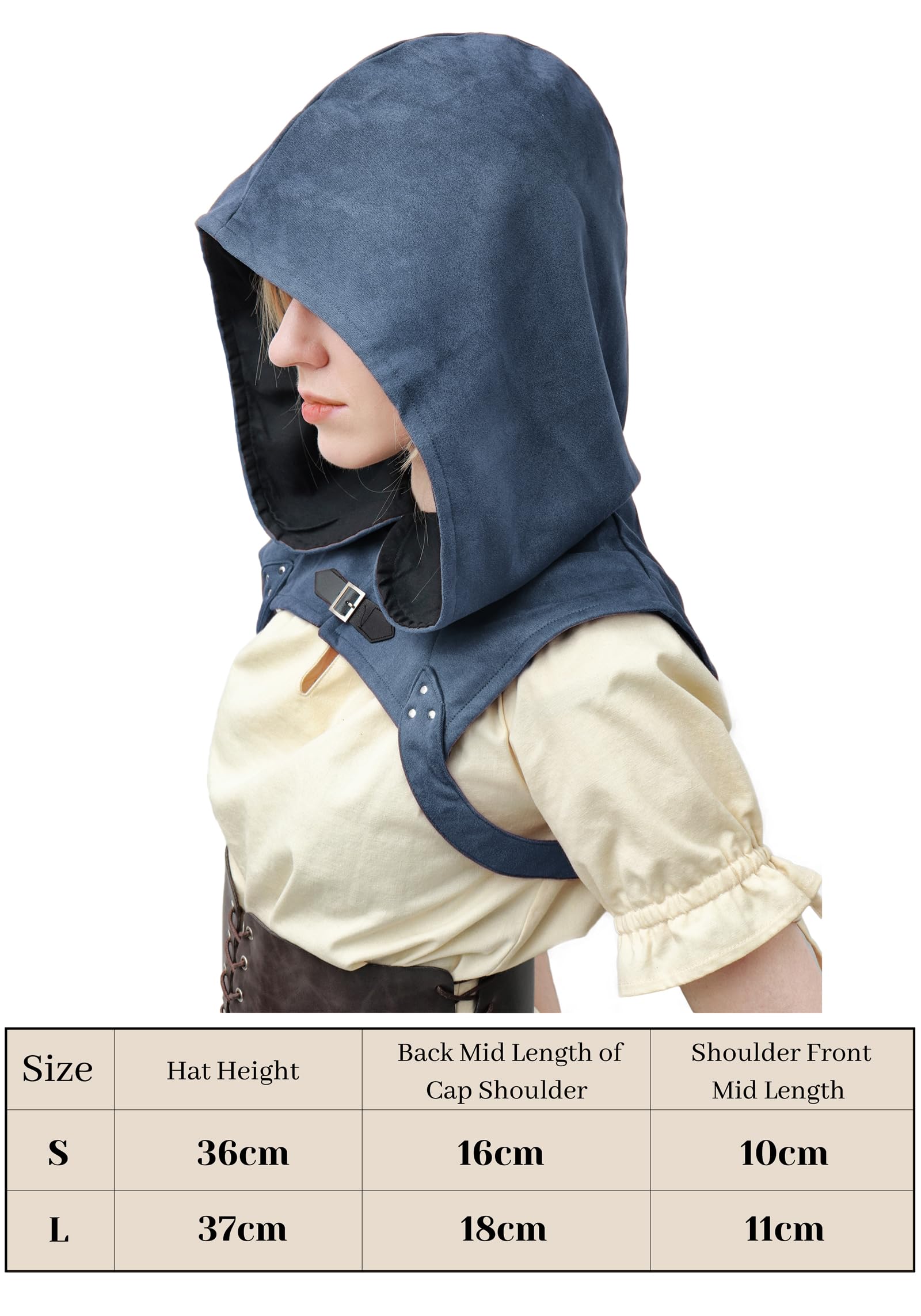 Easy to Wear: This medieval cloak cap is fixed with adjustable length straps and buttons. This design meant that the medieval hood would not be easy to slip off, and the button design makes the cloak more cool and fashion