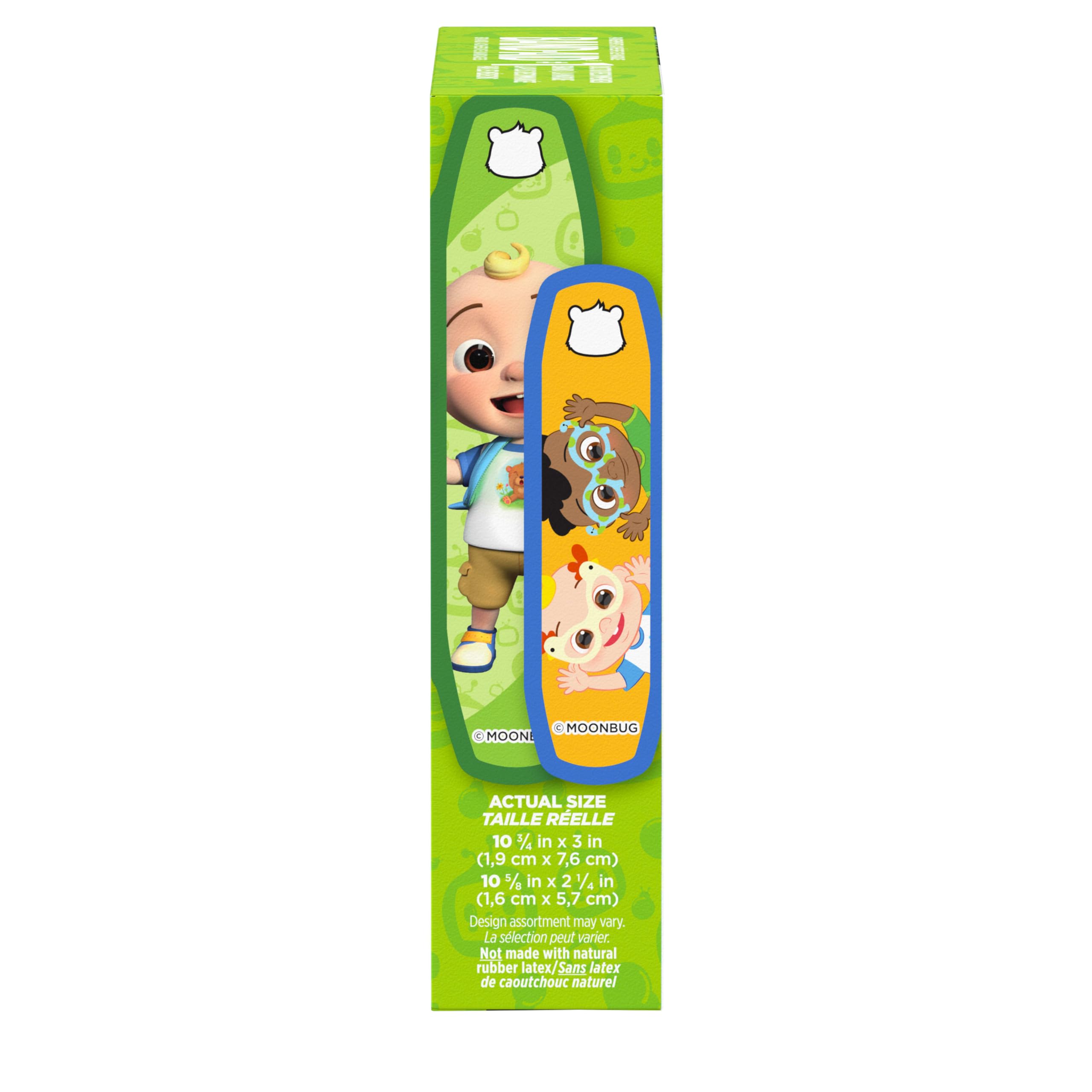 Cover and protect your child's minor cuts, scrapes, and blisters while putting a smile on their face with Band-Aid Brand Adhesive Bandages featuring CoComelon characters. These sterile, individually wrapped bandages for kids and toddlers have fun, colorful Moonbug CoComelon graphics and feature a non-stick pad that protects sensitive wounds from contact with dirt and germs without adhering to the wound. Each adhesive bandage from a doctor-recommended bandage brand is sure to delight your child thanks to colorful character designs featuring J.J. & Cody from the animated show. Ideal for home first aid kits and wound care supplies, this box contains 20 decorative bandages in assorted sizes.