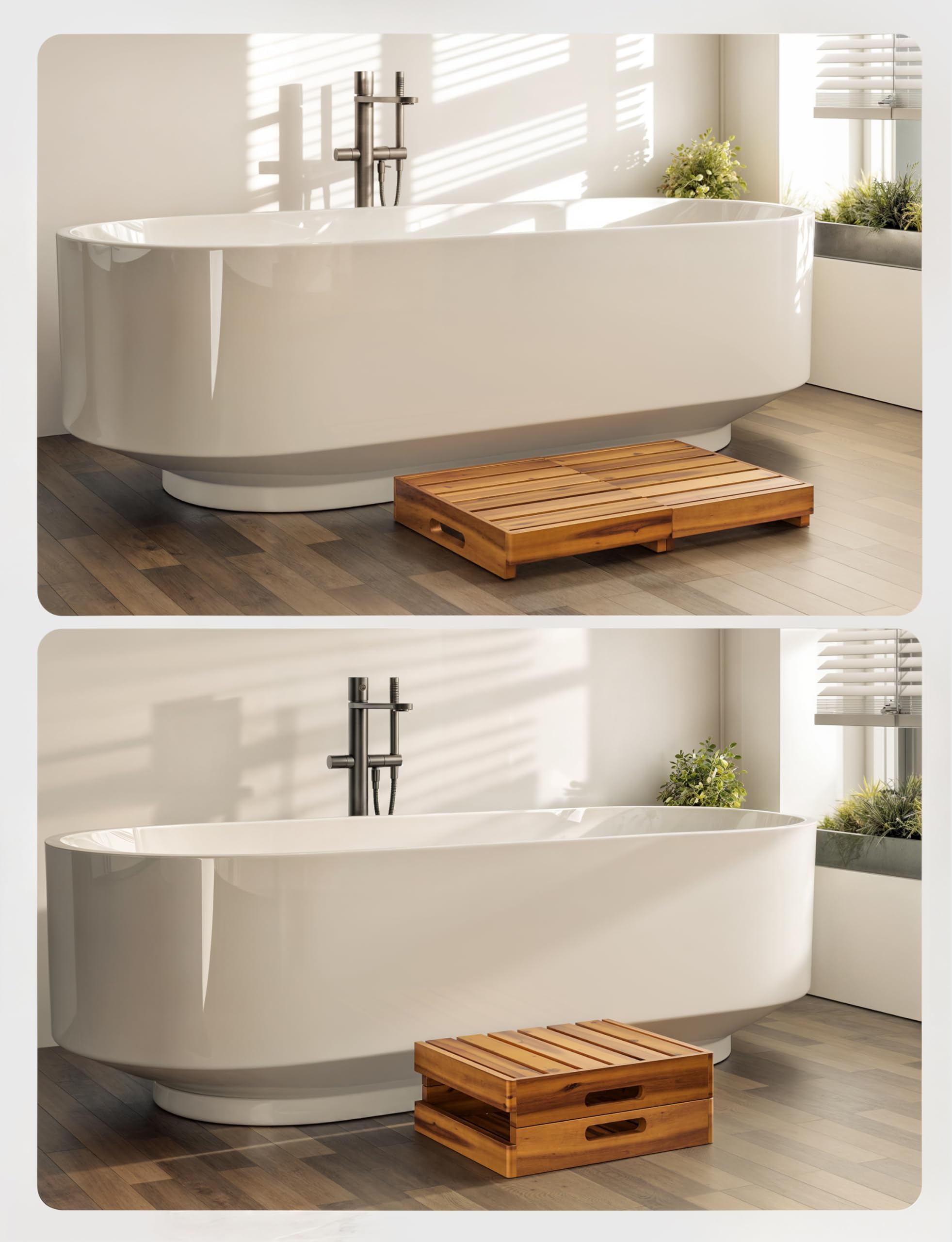 Natural Acacia Wood: Crafted from natural Acacia wood with beautiful wooden pattern, this durable wooden step stool for adults is strong enough for daily use indoors or as porch steps for outside