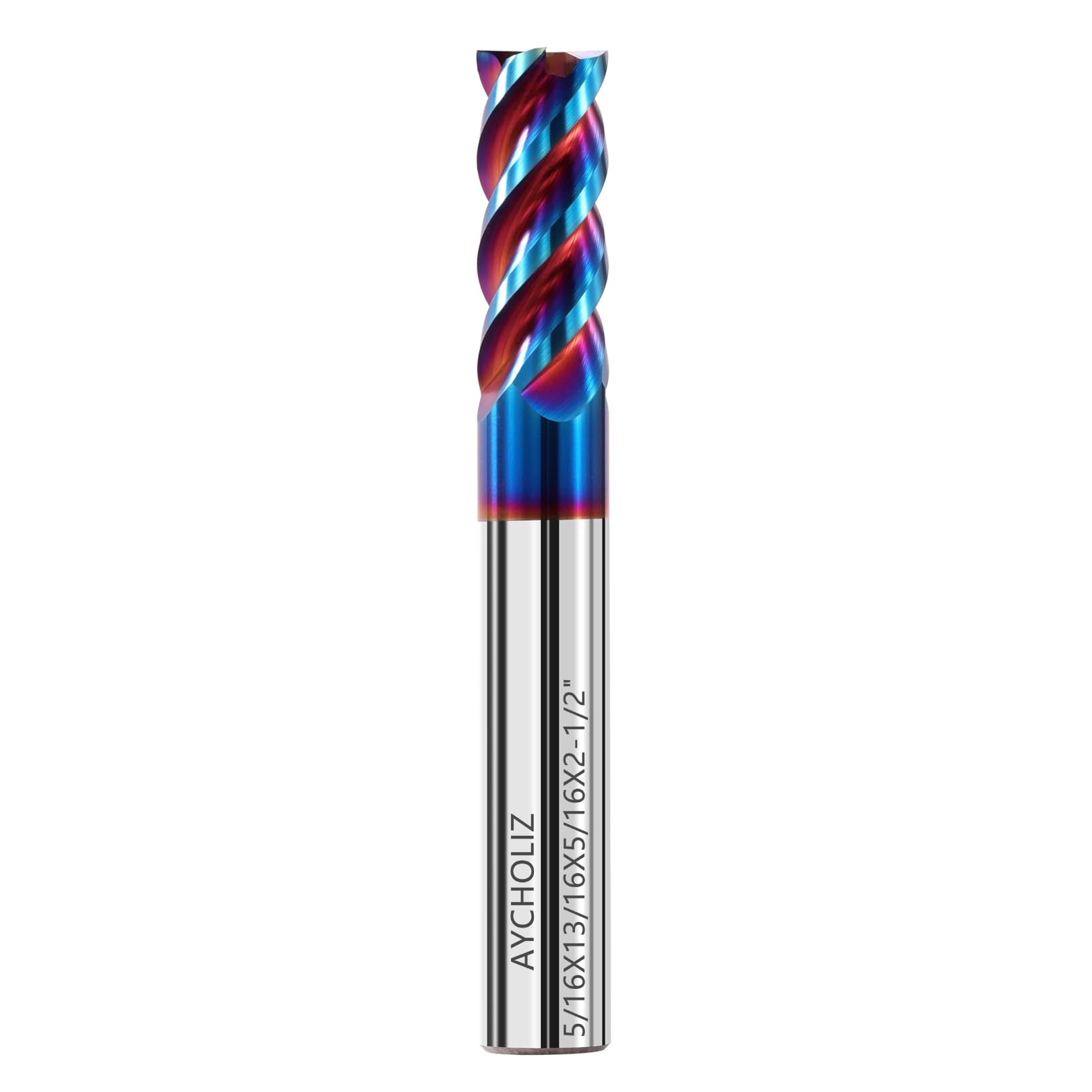Package Included: 1pc square nose end mill. Cutting diameter: 5/16inch; Shank diameter: 5/16inch ; Flute cutting length: 13/16Inch; Overall length: 2-1/2Inch.