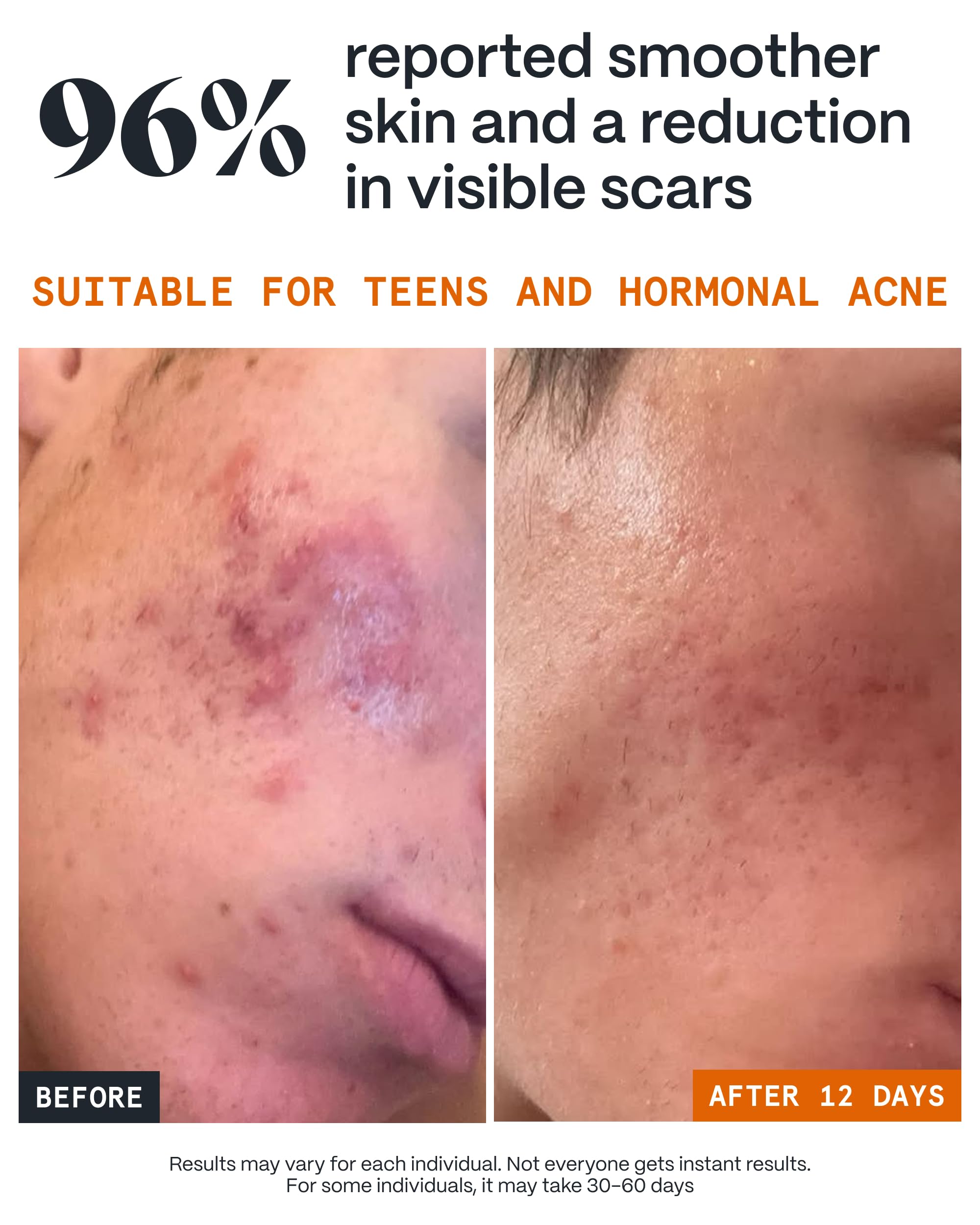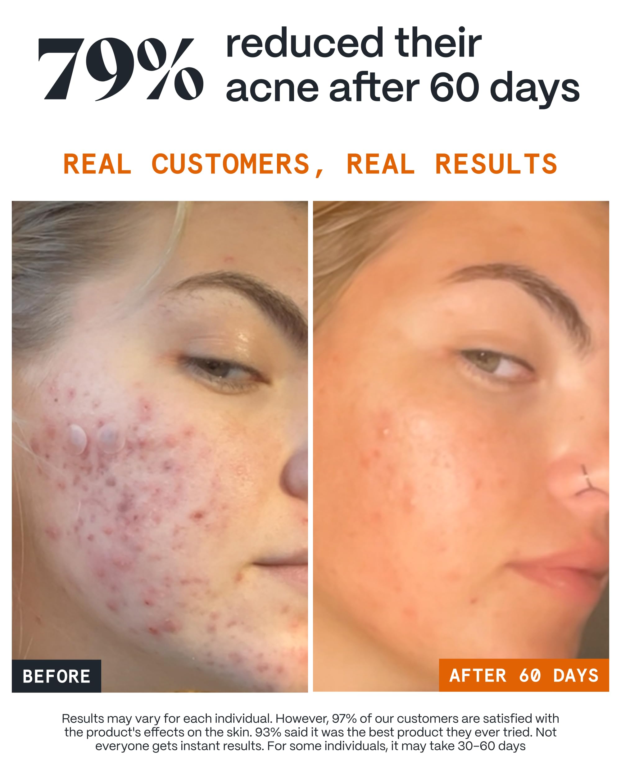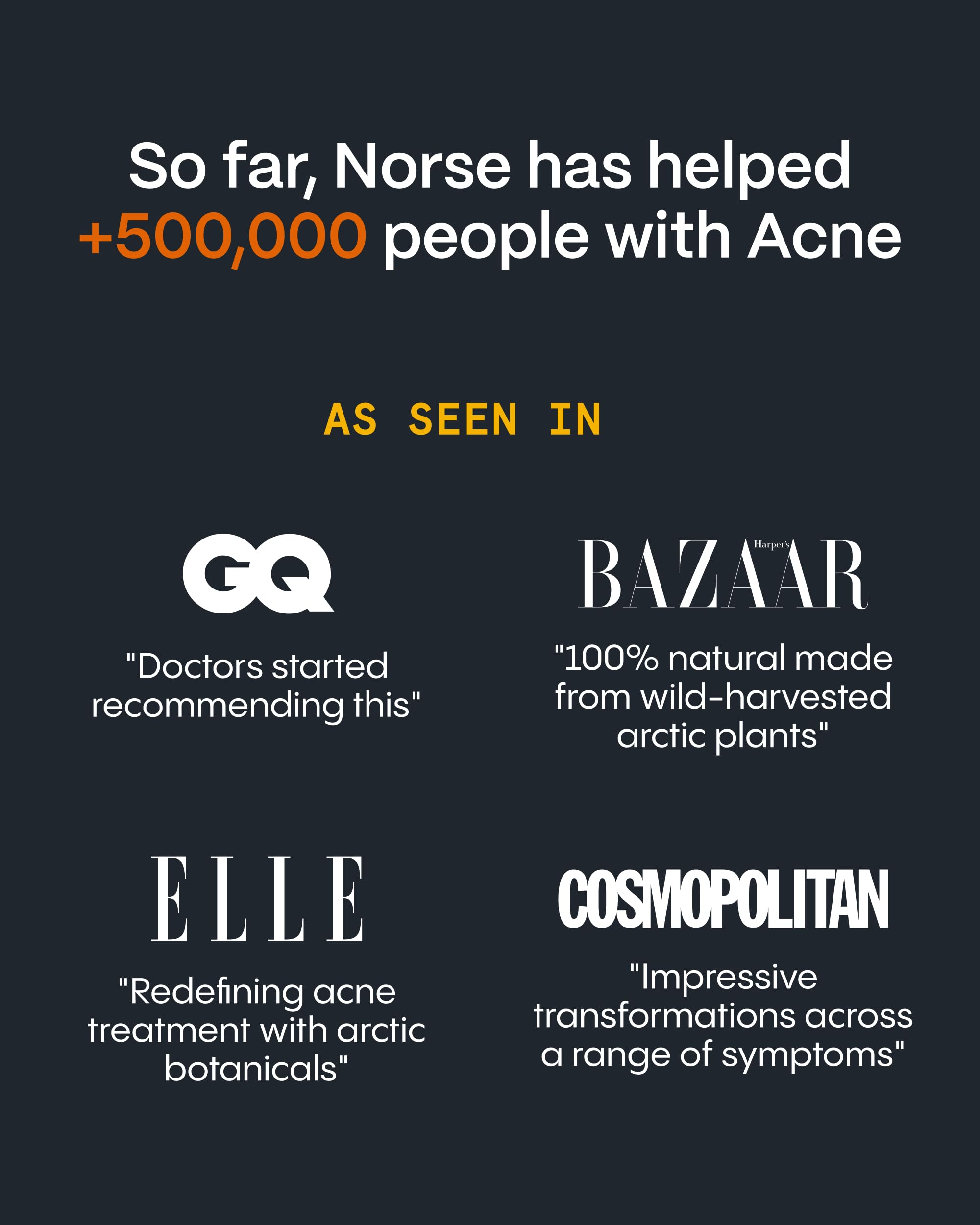 POWERFUL ARCTIC BOTANICALS THAT WORK IN DAYS. Sea Buckthorn with 190 bioactive compounds, Rosehip, Arnica, Marigold, and Thistle work together to address acne causing bacteria, support skin balance, and help restore your complexion quickly with visible improvements often seen within days.