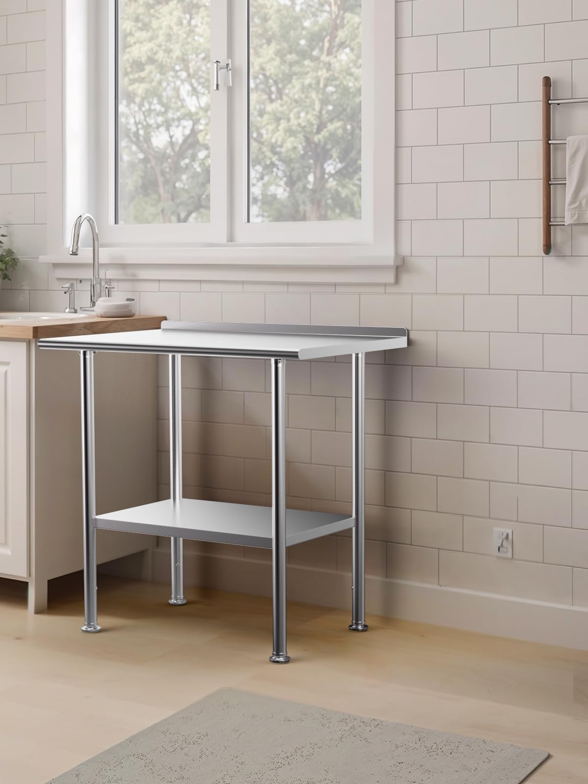 【Versatile Applications】This stainless steel table is perfect for both commercial and residential settings, including homes, restaurants, hotels, warehouses, workshops, kitchens, garages, gardens, and clinics. It serves as an ideal workbench for food prep, or storage purposes.