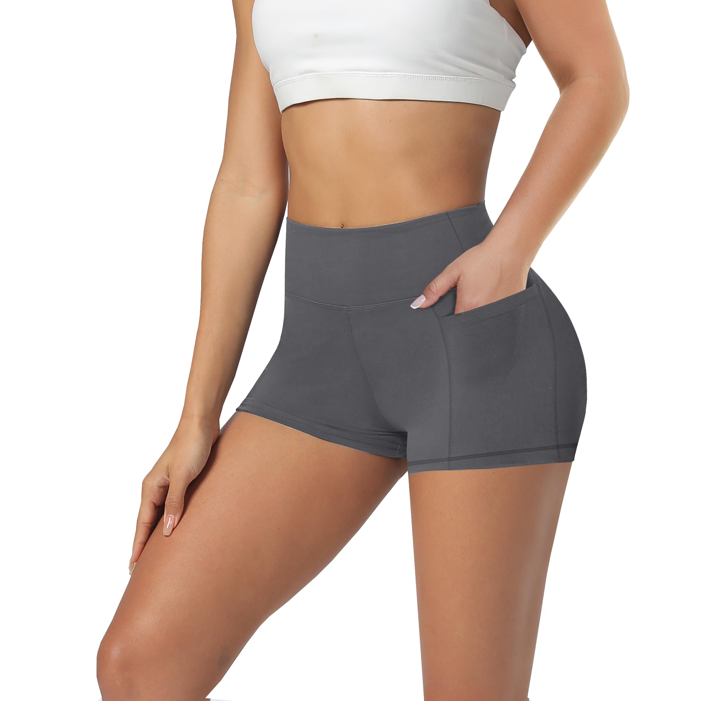 【Super Soft Fabric】92% polyester, 8% spandex shorts let you feel lightweight and extremely soft. These workout yoga shorts have moisture-wicking premium fabric that is breathable, non-sweat, and quick dry, allowing for your breathable and freedom of movement. They perfectly fit your body and never roll up when you exercise.