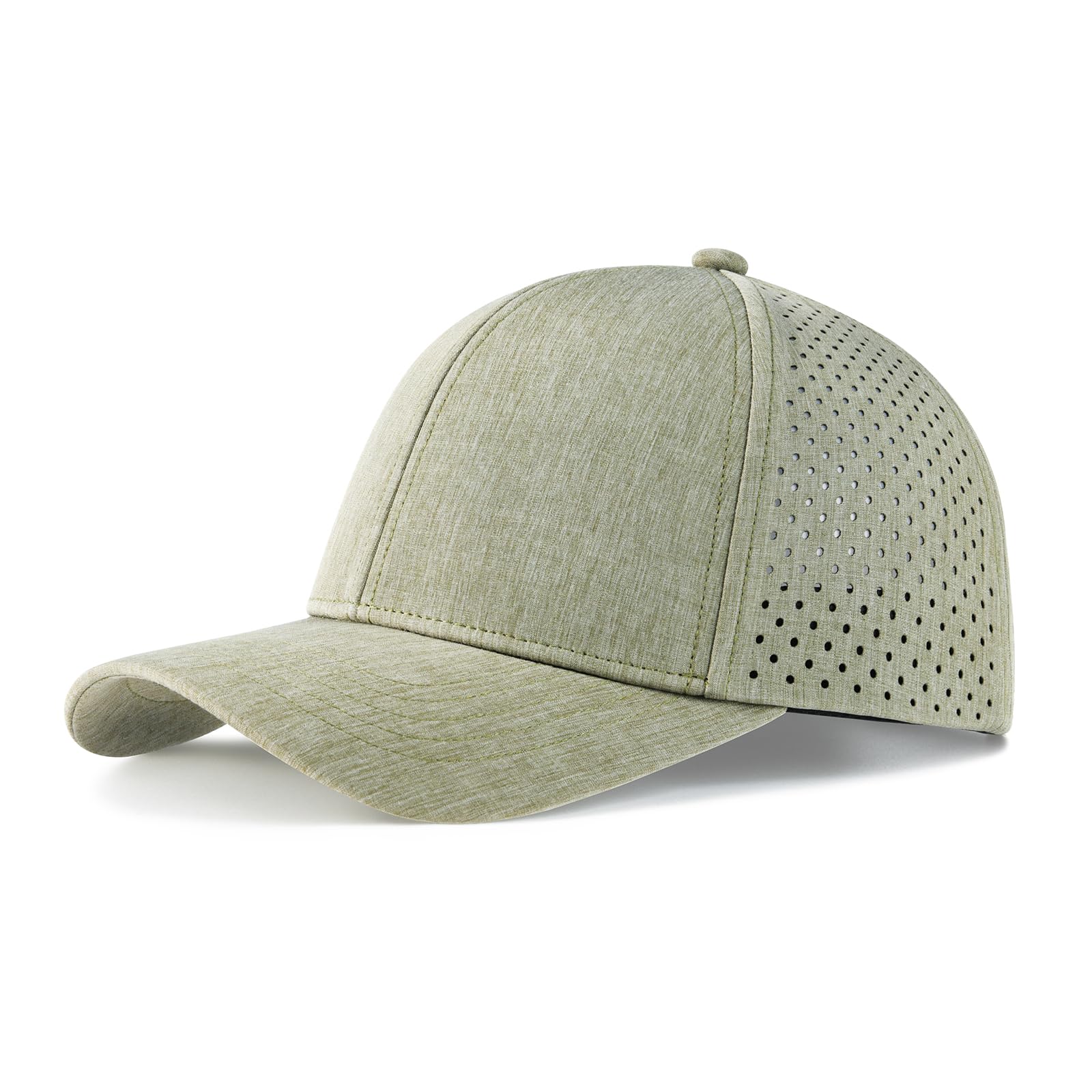 Design: structured front panels, 6-panel cap, curved brim, laser-perforated side & rear panels for breathability, and soft touch snapback closure