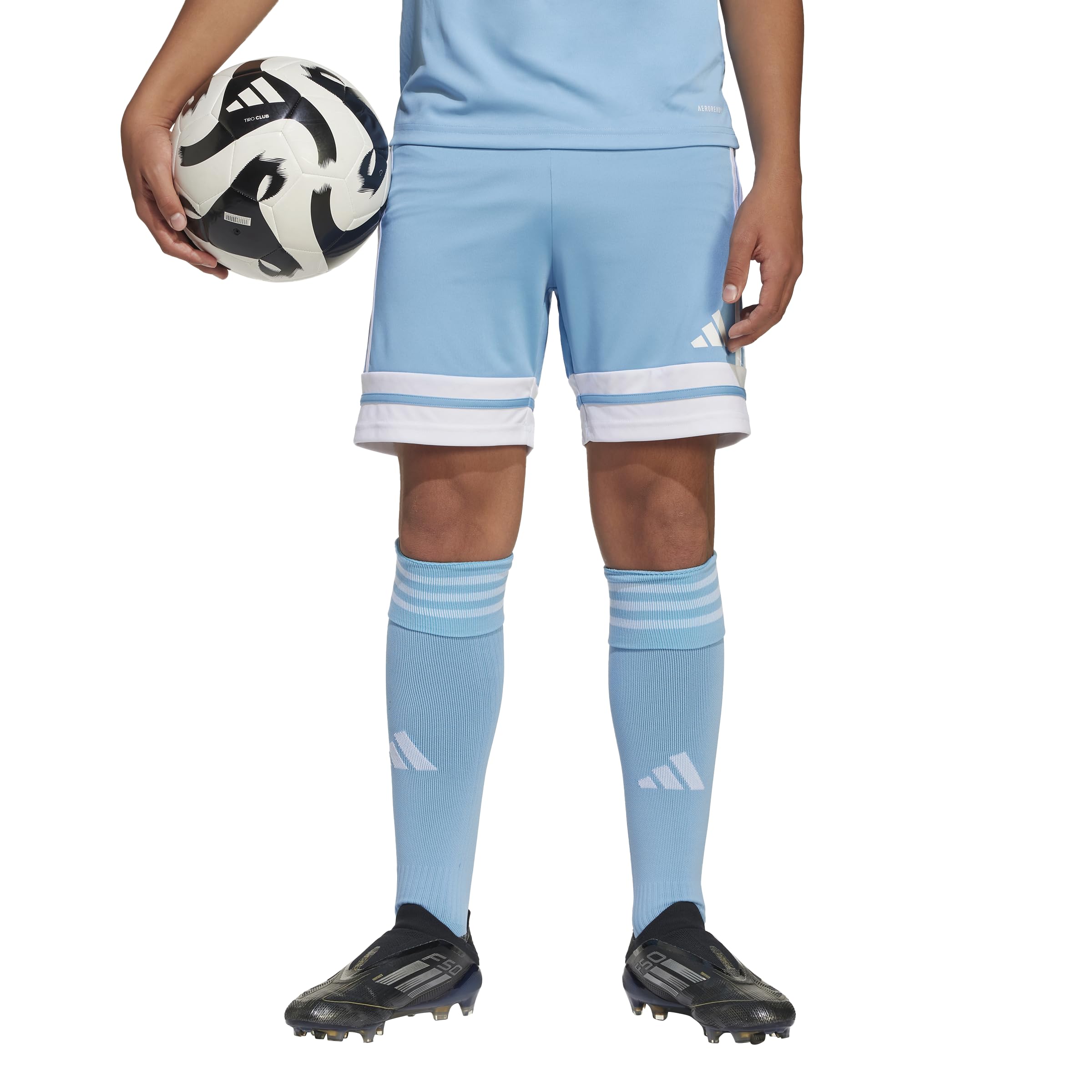 Description Look and play like a team in these juniors' soccer shorts from adidas. Adjust the drawcord at the waist for the perfect fit. Moisture-absorbing AEROREADY will keep you dry and focused through every arrowing strike. Wear them with the Squadra 25 jersey for a professional look.