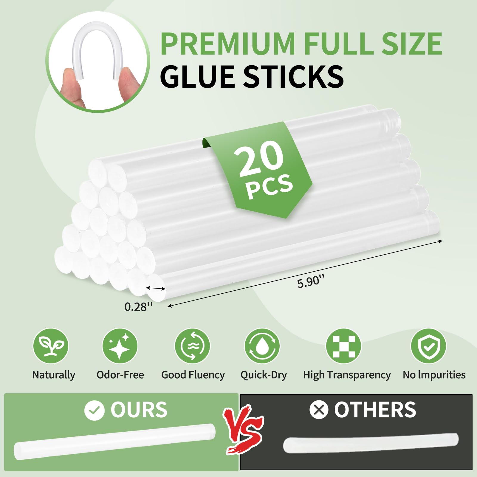 【Wireless Freedom & Long-Lasting Power】Enjoy cordless convenience with 2900mAh lithium battery (charges by USB-C) - perfect for crafting anywhere. Includes 20pcs transparent glue sticks (7mmx15cm) for extended projects. Say goodbye to messy wires during DIY home repairs.
