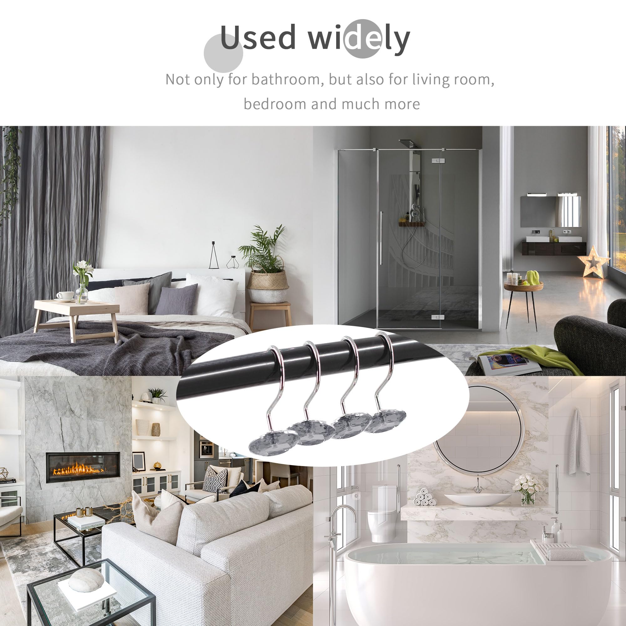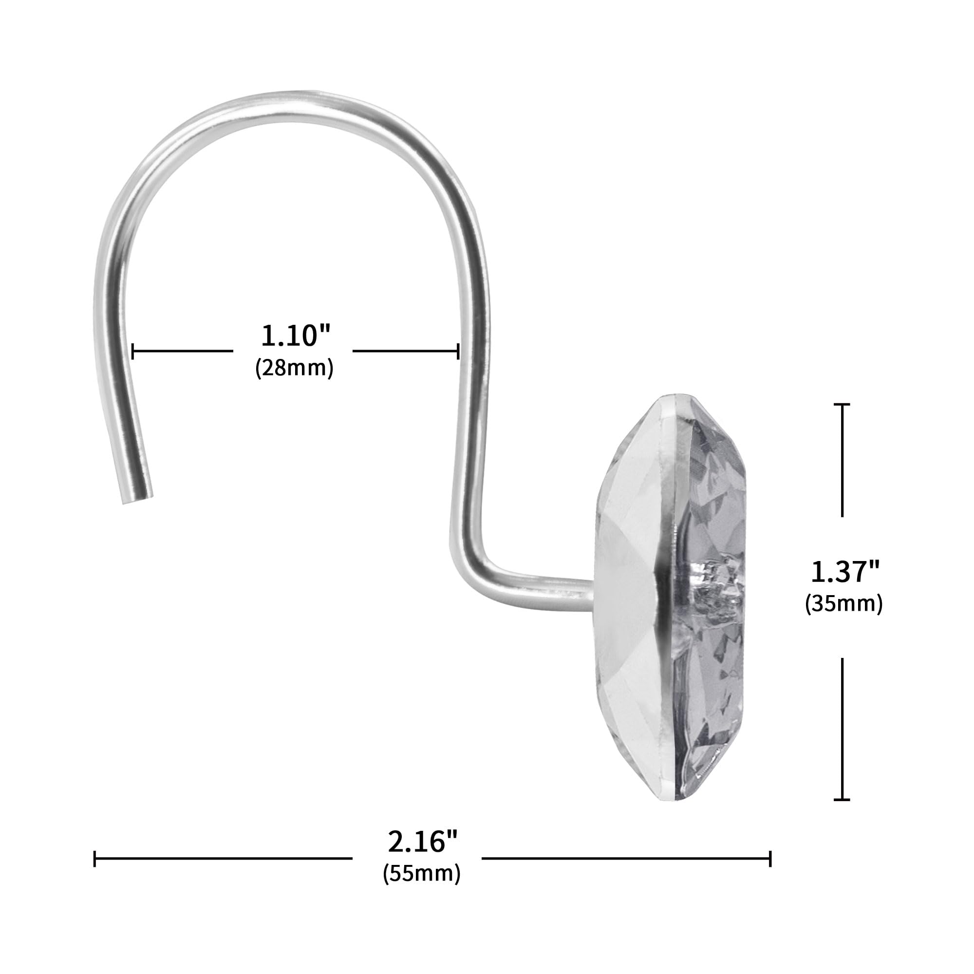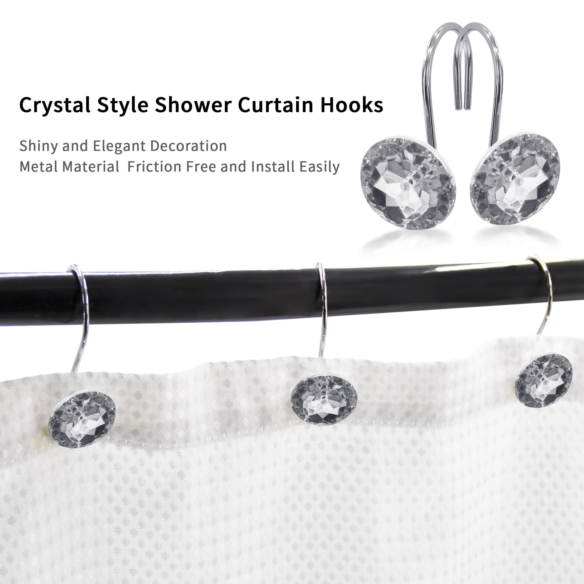 STYLISH AND FUNCTIONAL - Elevate the look of your shower curtain with these hooks featuring a sleek and modern design. The addition of rhinestone decorative accents adds a touch of elegance that complements any bathroom decor.
