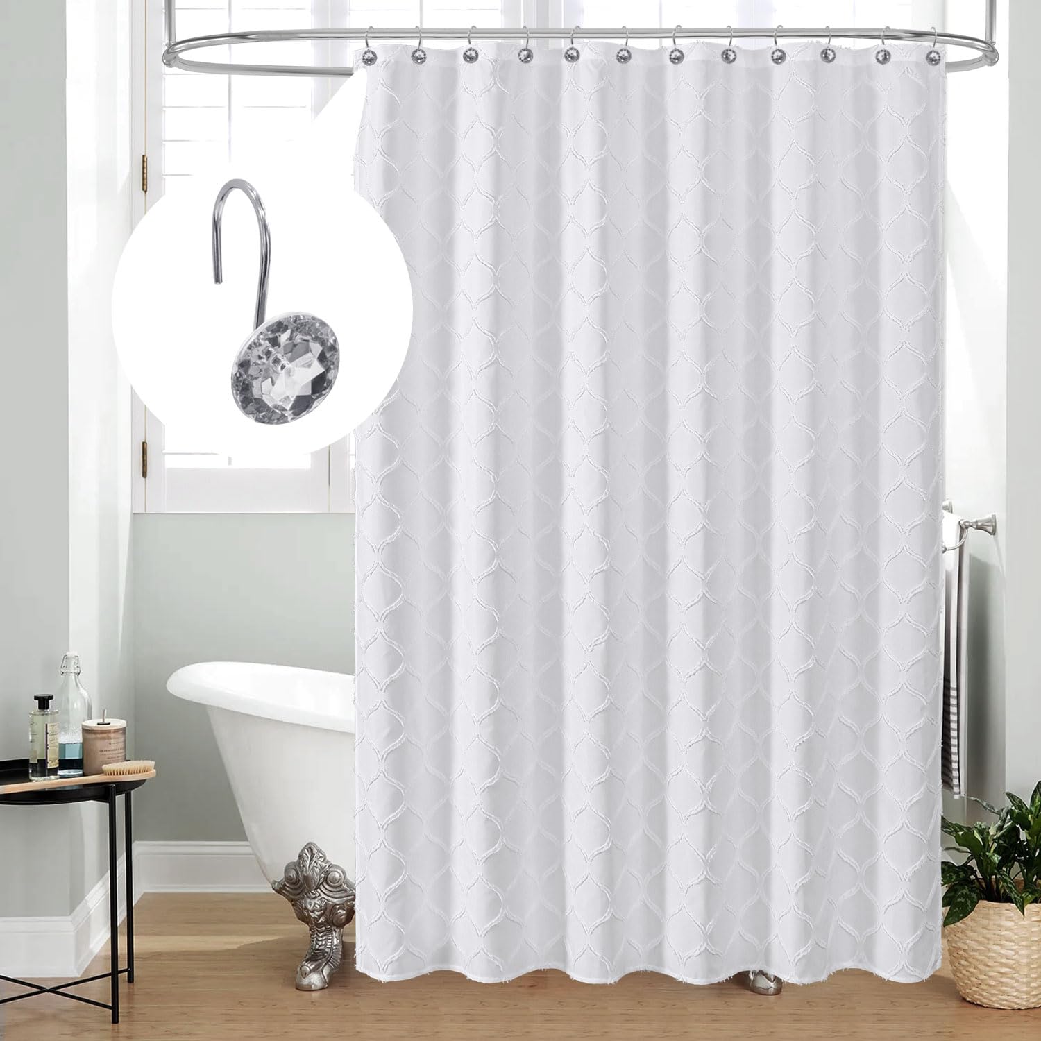 VERSATILE COMPATIBILITY- These shower curtain hooks are compatible with standard shower curtain rods and can be used with various types of shower curtains. Whether you have a fabric, vinyl, or PEVA shower curtain, these hooks will seamlessly work with them.